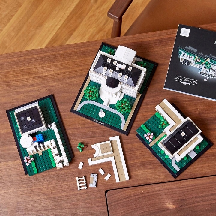 - Сборка этой модели LEGO доставит большое удовольствие всем взрослым. Он включает в себя такие детали, как особняк руководителя, западное крыло, восточное крыло и колоннады Белого дома, а также розарий и сад Жаклин Кеннеди.