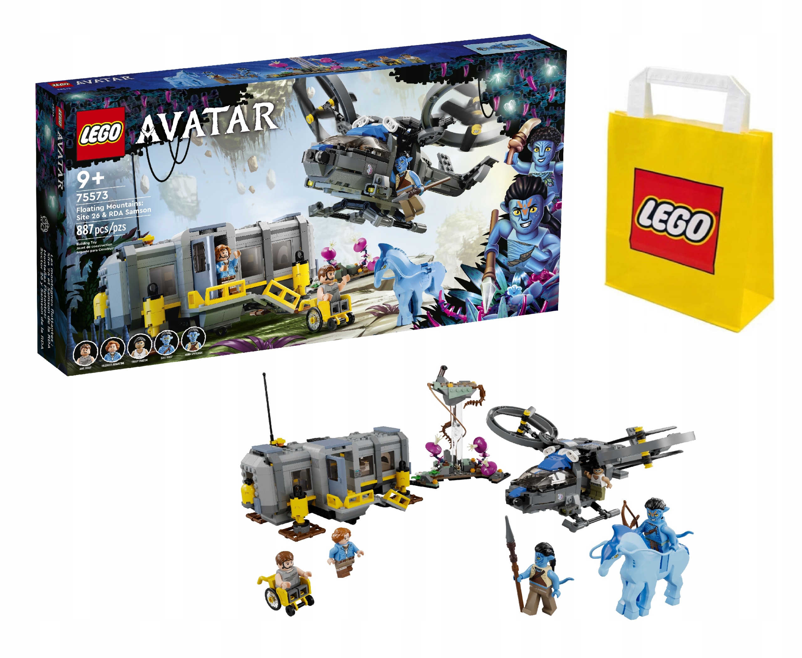 Каждого поклонника «Аватара» от девяти лет и старше ждут приключения с набором «Летающие горы Аватара» LEGO®: Станция 26 и «Самсон ЗПЗ» (75573). Включает в себя 2 минифигурки Джейка Салли (в форме На'ви и человека), 3 другие минифигурки, темную лошадку (Па'ли), футуристический вертолет SA-2 Samson, узловую станцию на Станции 26 и конструкцию со светящимися элементами темноты.