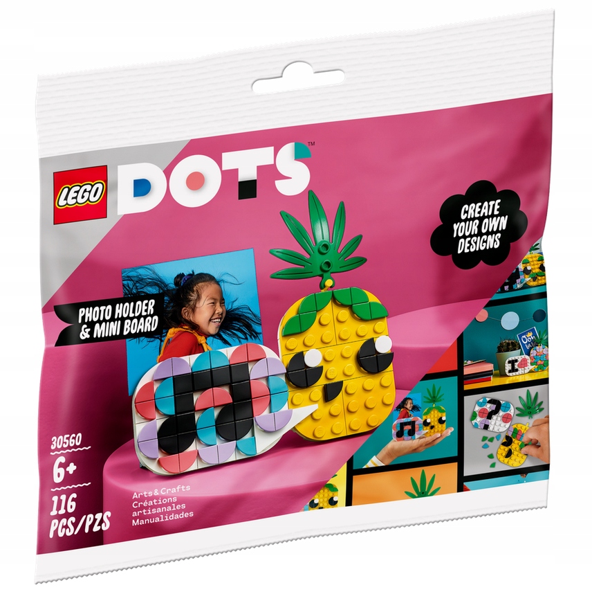 Наборы Lego вдохновляют мальчиков и девочек на строительство, создание и изобретение. Бесчисленные возможности бесплатного веселья и творческого самооценка позволяют им улучшить свои ценные способности, которые будут полезны для взрослой жизни. The Lego Dots 30560 Pineapple Set - фоторамка и миниатюрная доска, дает фанатам, которые не имеют ограниченных возможностей для дизайна