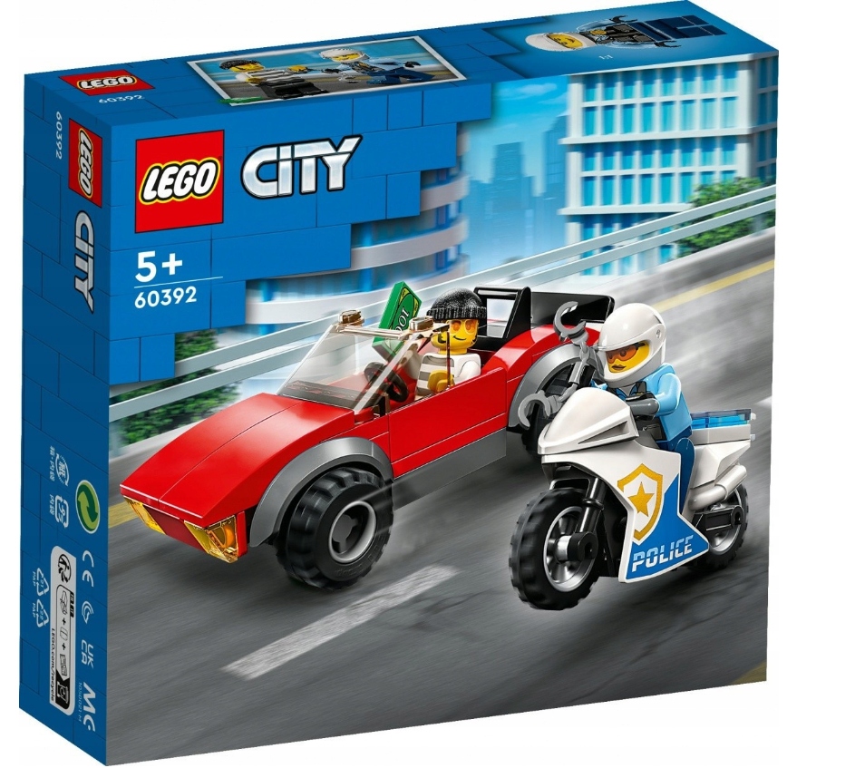 Разбудите воображение своих детей с помощью этого насыщенного действиями набора. LEGO® City Police Bike Car Chase (60392) включает в себя полицейский мотоцикл для погони и спортивную машину вора. Просто добавьте минифигурки полицейских и бандитов, игрушечные деньги и немного воображения, чтобы весело провести время. Интерактивные инструкции превращают сборку в увлекательное занятие. В набор входят иллюстрированные инструкции и приложение LEGO Builder — инструмент масштабирования и поворота цифровых моделей, который помогает детям визуализировать каждую модель со всех ракурсов во время сборки и доставляет удовольствие. Игрушки, пробуждающие воображение. Наборы LEGO City позволяют детям оказаться в центре событий. Полные реалистичных транспортных средств, детально проработанных зданий и необычных персонажей, они стимулируют творческую ролевую игру и придумывание собственных историй.