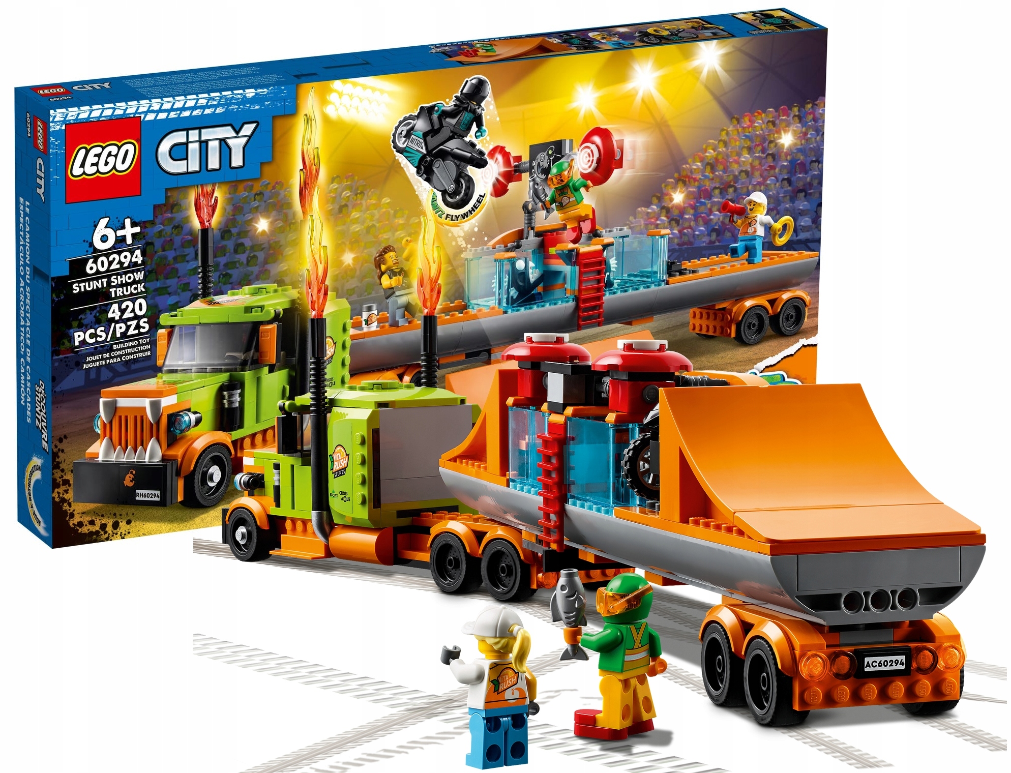 Высококачественный набор LEGO® City Stunt Truck (60294) наполнен функциями, которые способствуют захватывающим играм. даже трюковый велосипед с маховиком для впечатляющих прыжков.