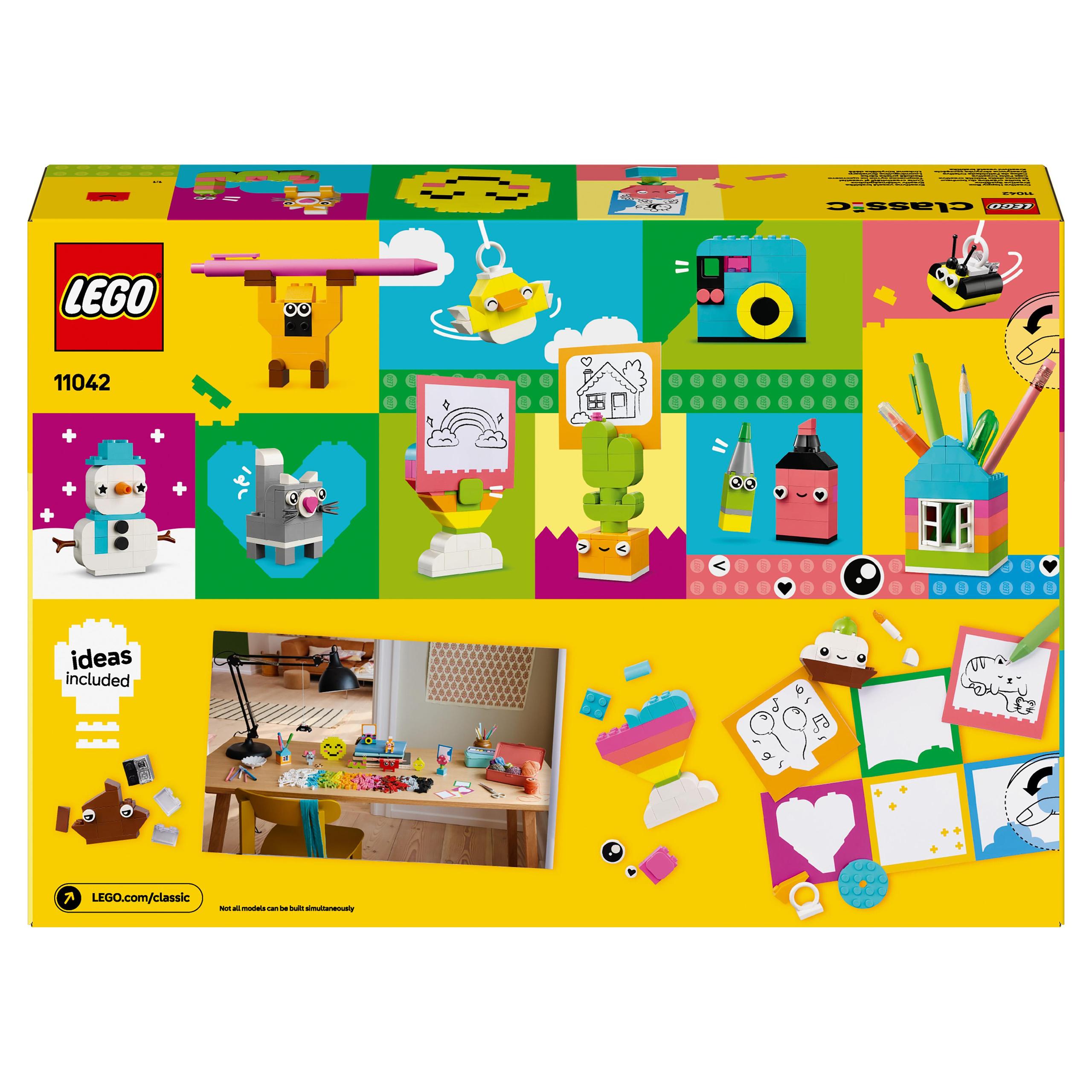 Classic LEGO Classic Creative Happiness Box, Детская сборная игрушка, Коробка из 680 кубиков и дополнительных деталей, Подарок для дошкольника, для 5-летнего ребенка, для девочки и мальчика, 11042 мальчик девочка сын дочь племянница племянник 3 4 6 7 подарок-сюрприз независимые строительные блоки вся семья вместе развивающие аксессуары для обучения Монтессори небольшие украшения письменный стол крутой детский сад детский сад клуб Creative Happiness Box LEGO® Classic Creative Happiness Коробка LEGO® Classic Bricks Creative Happiness Box 11042 Набор LEGO® Classic Creative Happiness Box подарит творческое развлечение, во время которого дети смогут построить множество функциональных персонажей и многое другое. Разноцветные кубики и детали доставят массу удовольствия. Подарите своим маленьким строителям лучшее начало жизни с помощью «Коробки творческого счастья» LEGO® Classic (11042). В набор входит 680 красочных блоков и специальных элементов, а также вдохновляющие инструкции, гарантирующие бесконечное веселье. В наборе Creative Happiness Box 10 моделей, которые можно быстро собрать, и они доставят массу удовольствия. Дети смогут перестроить эти модели в 12 новых игрушек, а затем персонализировать их в соответствии со своими идеями. Благодаря этому они смогут украсить свою комнату интересными и функциональными предметами собственного творчества. Фигурки паука, пчелы и птицы имеют вешалки для демонстрации. Модели краба, обезьяны и домика могут хранить внутри небольшие предметы, например, карандаш или зубную щетку. В комплект моделей цветов, фотоаппаратов, маркеров, сердечек и кактусов входят зажимы, с помощью которых дети могут прикрепить заметку, открытку или фотографию (цветная бумага входит в комплект). Другие модели в наборе включают кота, мышку, лимон, червяка и смайлик. Поделитесь своим счастьем и вдохновите своих детей на творчество с помощью этого универсального набора. Откройте коробку, полную разноцветных кубиков LEGO®, и дайте волю своему воображению! Наполните свою комнату интересными и функциональными предметами собственного изготовления! Вы можете прикрепить рисунки и заметки к своим моделям и повесить их на стену, чтобы все могли их увидеть. Не забывайте об улыбающихся лицах, потому что «Коробка творческого счастья» LEGO Classic — это, прежде всего, отличное развлечение и творчество! • «Разноцветные кубики» — «Коробка творческого счастья для детей» — это коробка из кубиков LEGO®, полная ярких цветов, сборных игрушек и вариантов игр для детей от пяти лет и старше. • Разнообразие кубиков для детей — в набор входят идеи для 10 моделей, которые можно быстро собрать, и они будут вызывать улыбки на лицах. Перестройте из них 12 новых игрушек и персонализируйте их, чтобы создать больше моделей. • Ролевая игра – инструкции включают в себя вдохновение с помощью различных моделей, таких как обезьяна, маркер, снеговик, радужный домик, какашки, пчела, фотоаппарат, праздничный торт, кот, кактус, радужное сердце и птица. • Творческая игра – модели можно использовать для творческой игры, а также в качестве практических предметов, например