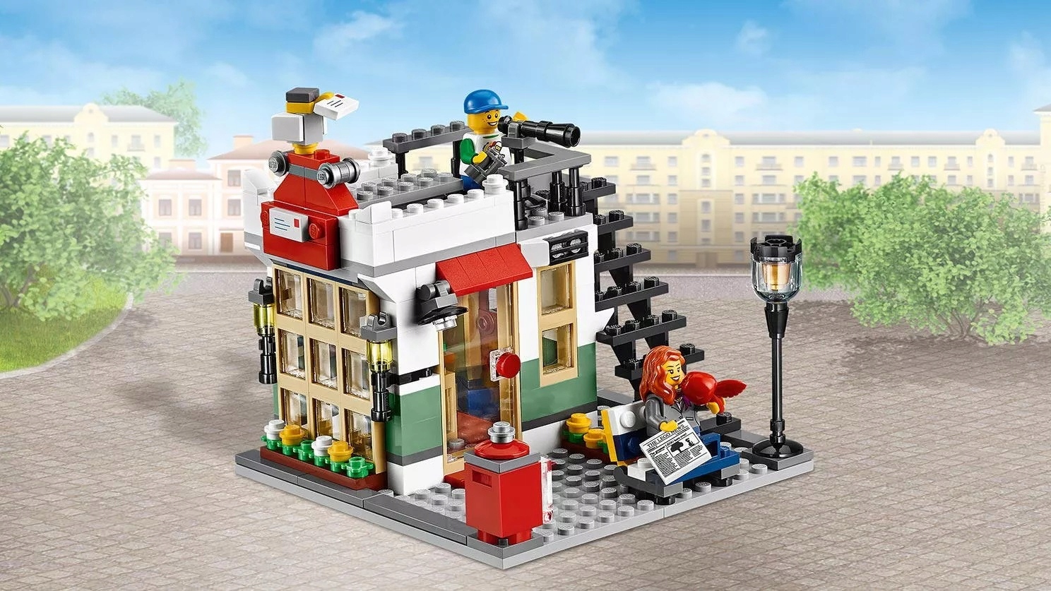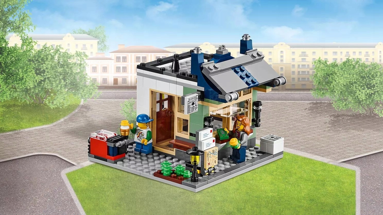 Вы можете купить вкусное красное яблоко или одно из красочных жевательных десен у ближайшей машины! Главная улица может быть расширена с помощью ваших собственных зданий LEGO®! Из набора вы также можете построить почтовое отделение или киоск с прессой - возможности, достойные реальной модели 3 в 1!
