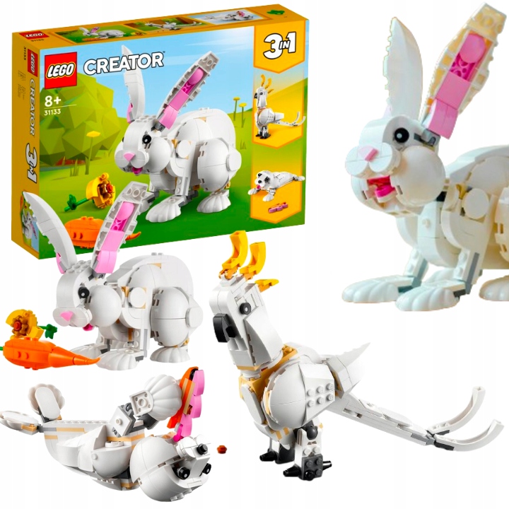 - Игрушка 3-в-1. Любители животных могут наслаждаться неограниченными играми с набором LEGO® Creator 3-в-1 «Белый кролик» (31133), который позволяет собрать белого кролика, какаду и белого тюленя.