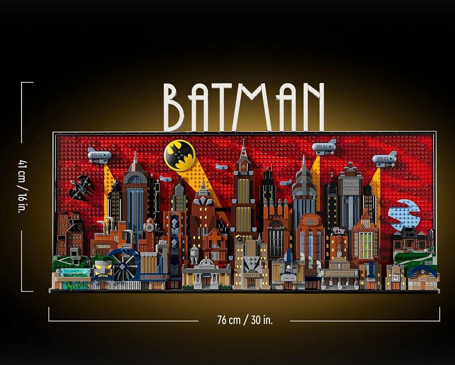 Панорама города Готэм, состоящий из 4210 элементов, имеет ширину 76 см. Он содержит 15 панелей, которые можно отделить, чтобы раскрыть интерьер резиденции Уэйн, Бэтмен Пещера и Аркхэмскую убежища, а также действия многочисленных злодеев из серии «Бэтмен: анимационные серии». Набор также включает в себя четыре минифигурного батмана, Joker ™, Harley Quinn ™ и Woman-Cota ™-и съемный Batmobil ™ и Batwing ™. Готовая модель можно повесить на стену или размещать благодаря подставке сгиба. Два набора прикрепленных инструкций по строительству позволяют вам одновременно строить двух человек. Для большего удобства, цифровая версия инструкций для набора можно найти в приложении Lego Builder. p>