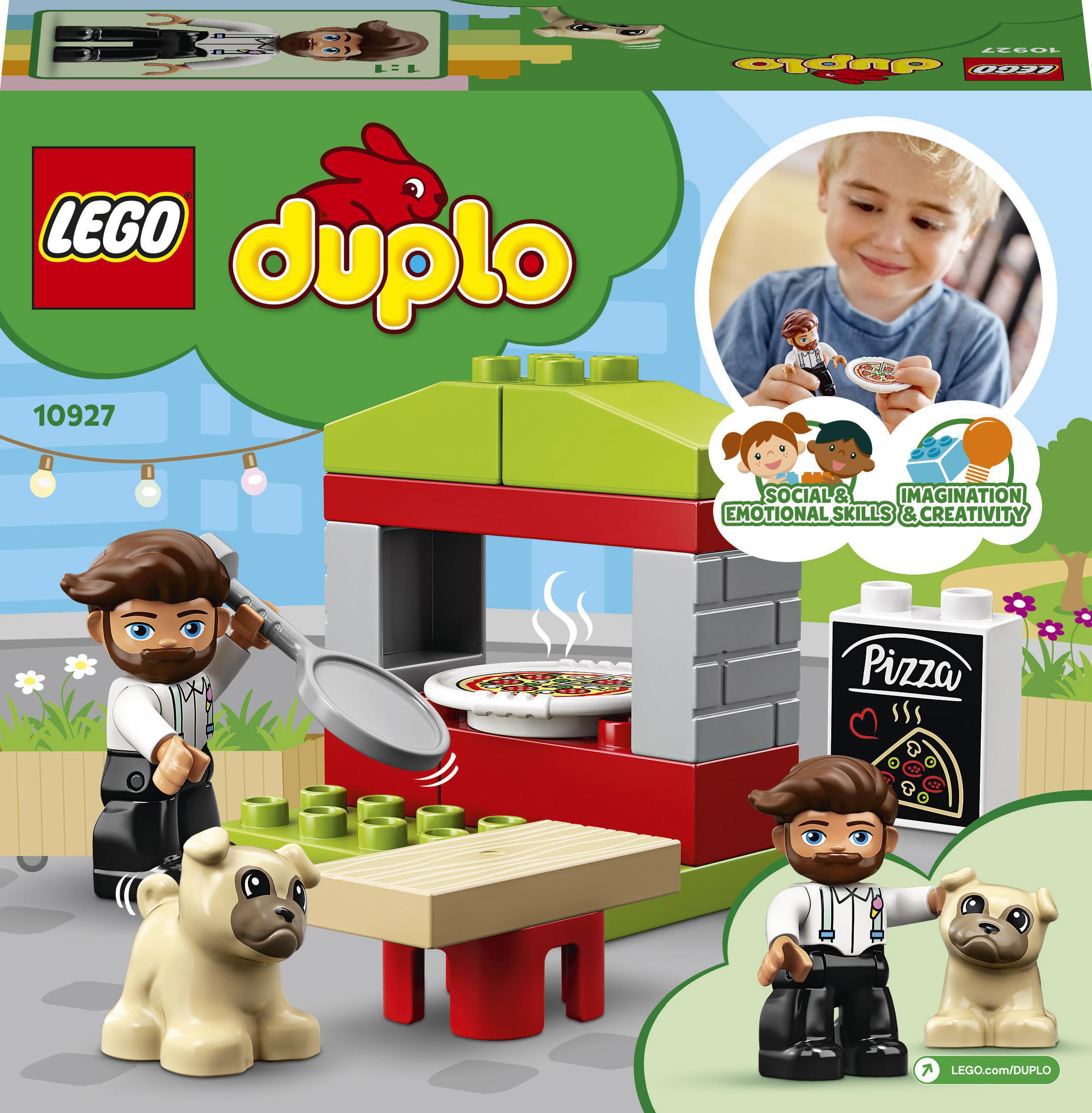 - С помощью простых и понятных инструкций дети смогут быстро собрать эту легкую пиццерию LEGO DUPLO и сразу же начать играть. Со временем их воображение подскажет им новые захватывающие истории.