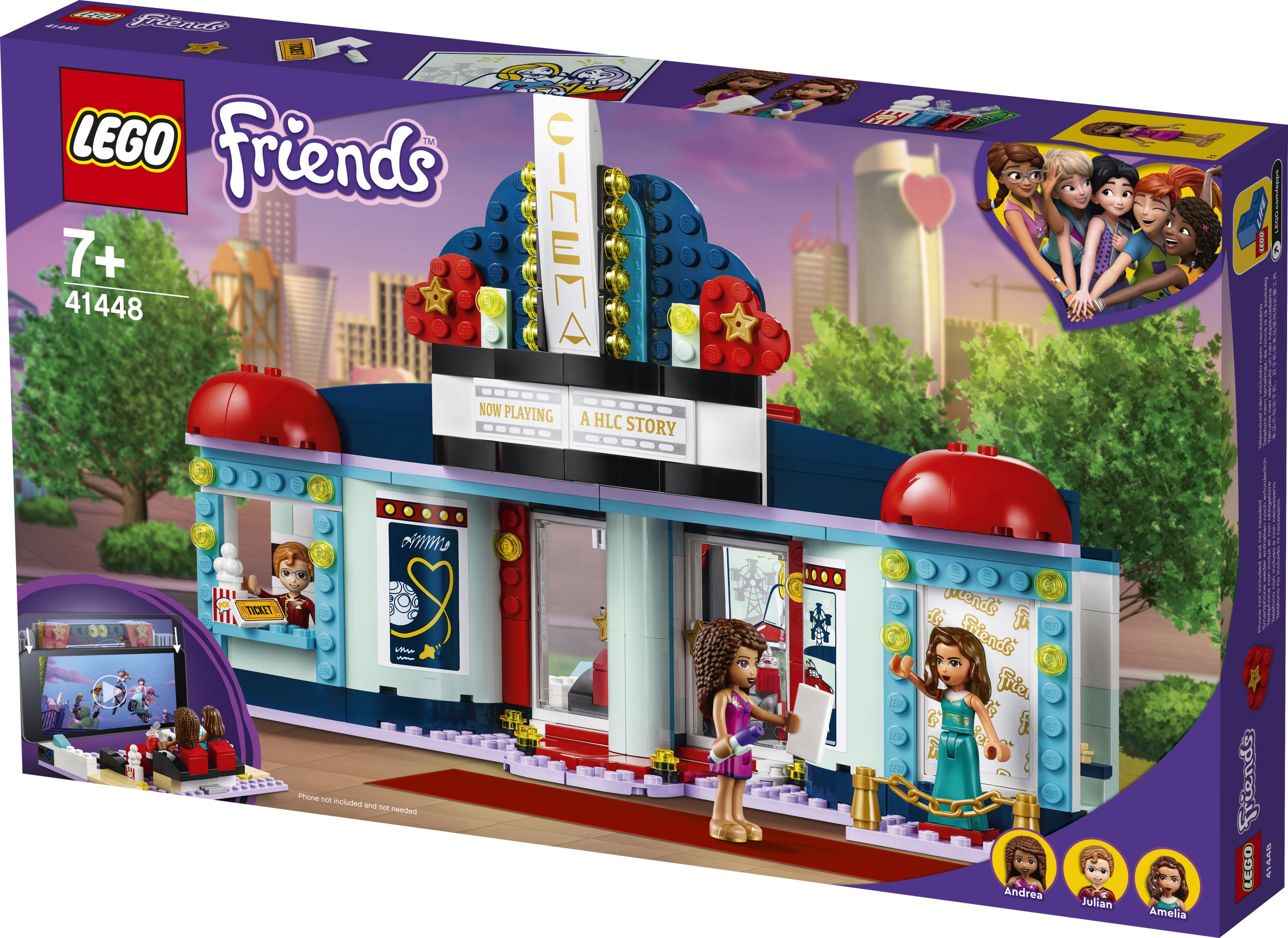 - У вас дома есть маленький поклонник кино? Порадуйте его набором LEGO® Friends «Кинотеатр Хартлейк Сити» (41448). Сегодня премьера, поэтому перед ретро-кинотеатром появилась красная дорожка и шикарная кинозвезда LEGO Friends!