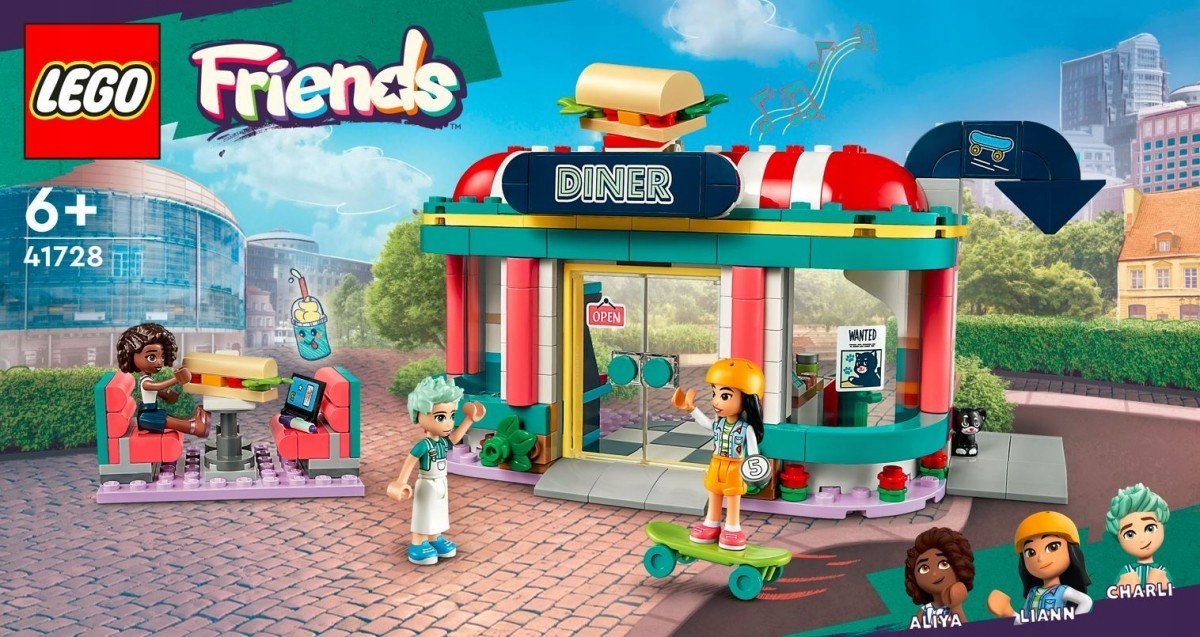 - Ресторанное развлечение для детей от шести лет и старше — набор LEGO® Friends Downtown Heartlake Bar (41728) вдохновляет на творческие игры.