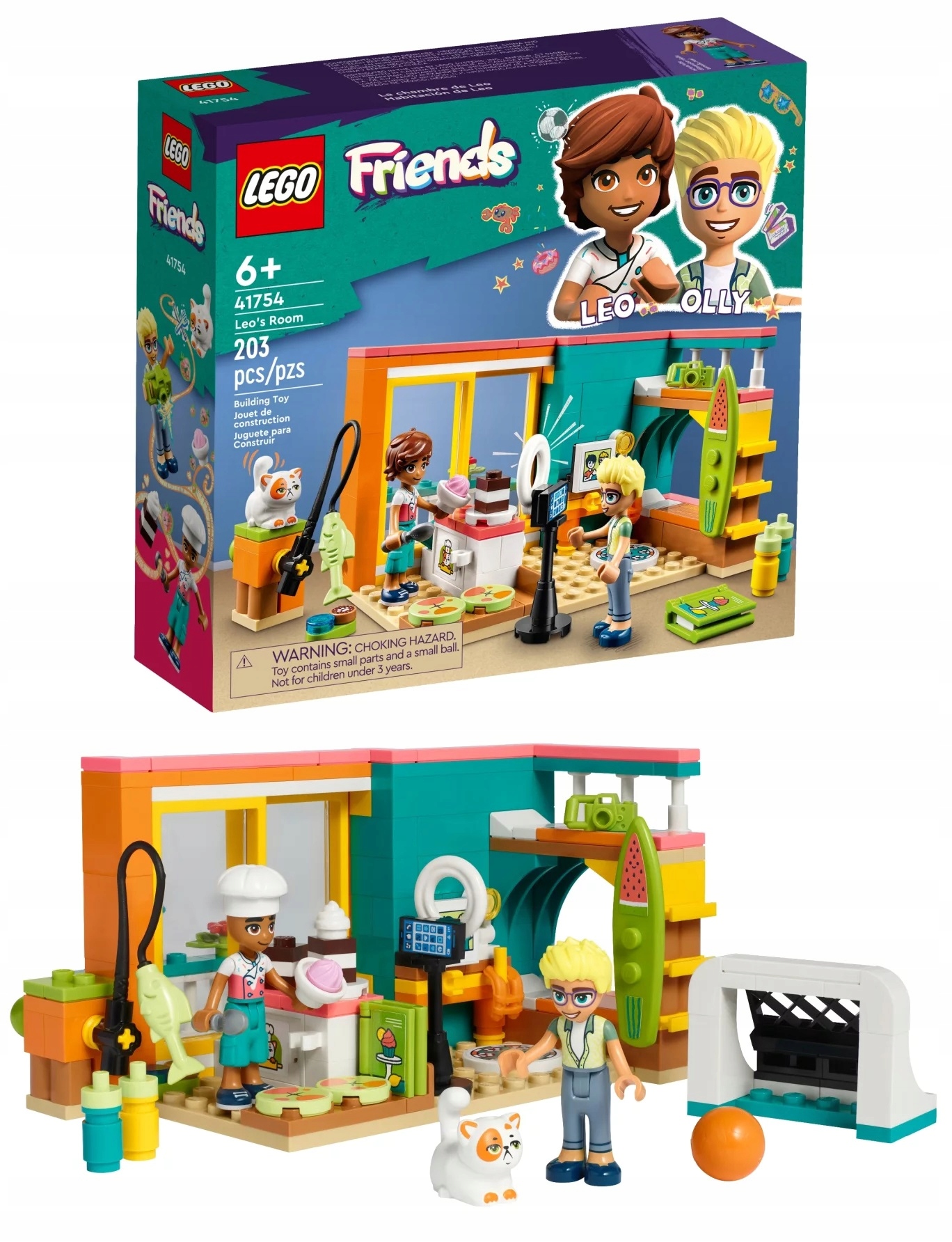 - Две мини-куколки — Включает фигурки мини-кукол LEGO® Friends — Лео и Олли, а также кот Чурро.