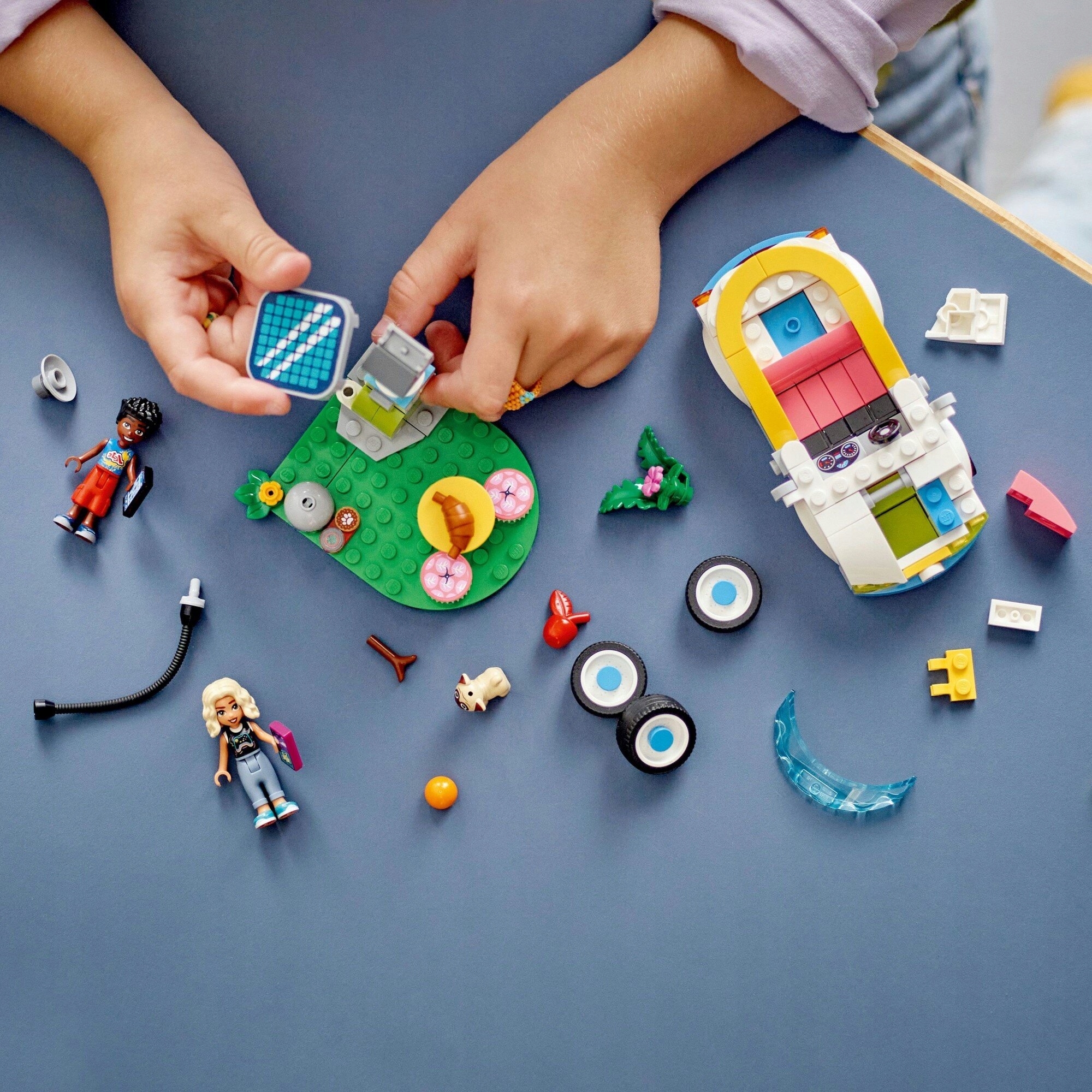 Вдохновите шестилетних детей и детей старшего возраста на творческие приключения за рулем игрушечного автомобиля с набором LEGO® Friends. У автомобиля также есть открывающийся капот с открывающимся капотом. место для хранения аксессуаров. На станции есть стол и два стула, на которых Зак и Нова могут устроить пикник, а также миски с едой и водой для Данго.