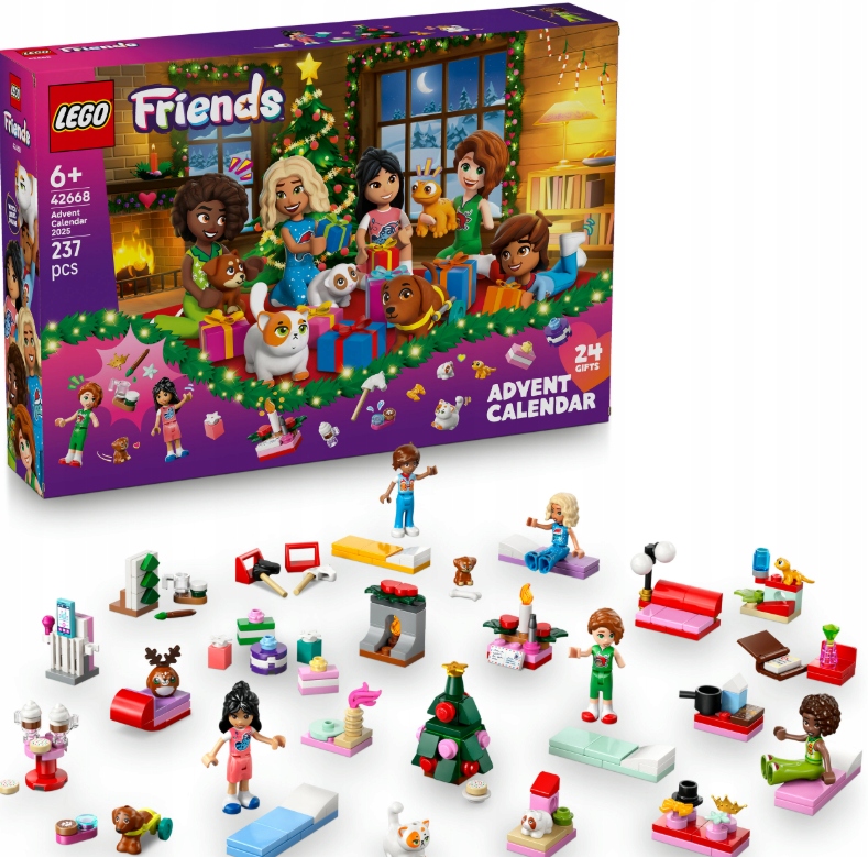 - Адвент-календарь LEGO® Friends 2025 — этот календарь для девочек и мальчиков в возрасте 6 и старше полны сюрпризов для каждого из 24 дней декабря, так что маленькие строители могут создать праздничную пижамную вечеринку.