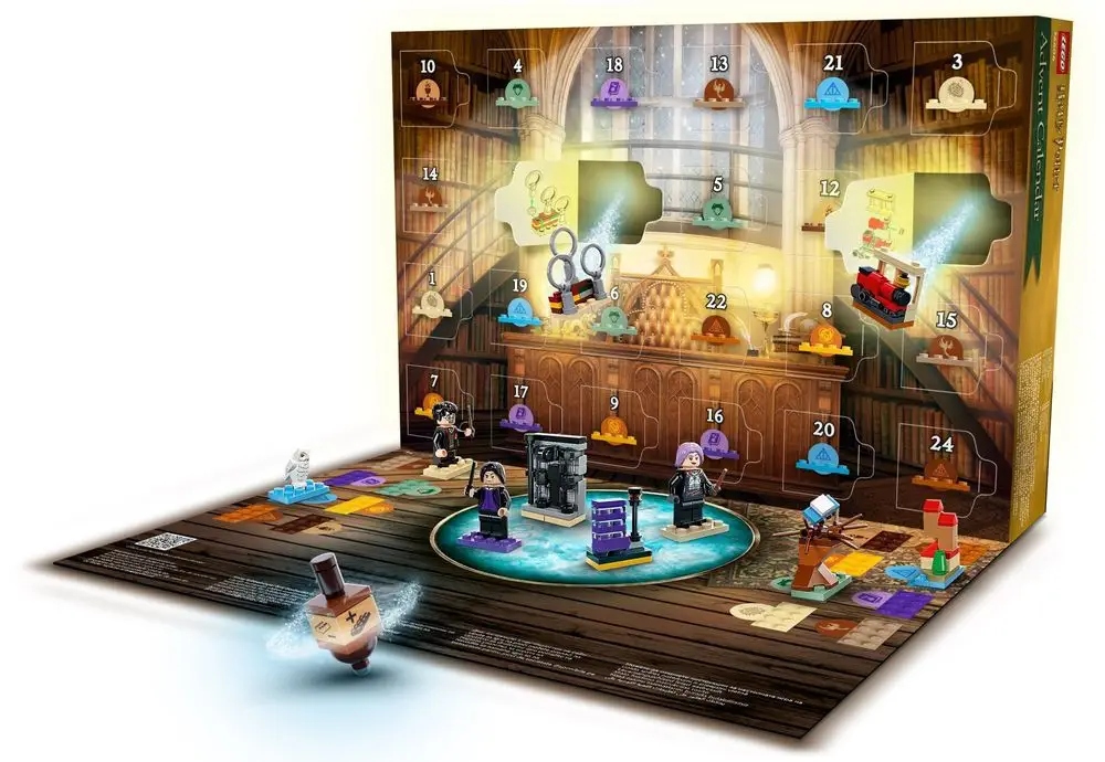 Начиная с 1 декабря открывайте одно окно каждый день, чтобы найти игрушку из мир эго Гарри Поттера Поттера. Внутри находятся семь минифигурок — Гарри Поттер, Сириус Блэк™, Стонущая Миртл™, Лорд Волан-де-Морт™, Гораций Слизнорт, Нимфадора Тонкс и Невилл Лонгботтом™, а также культовые аксессуары из фильмов. Первые три игрушки создают сцену из первого фильма, следующие три — из второго и так далее. Когда наступит Рождество, дети смогут создавать еще более волшебные сцены и соединять игрушки, чтобы разыграть свои собственные приключения. Внутри даже есть настольная игра, в которую можно поиграть, открыв все окна. Благодаря такому разнообразию развлечений волшебство будет длиться круглый год!