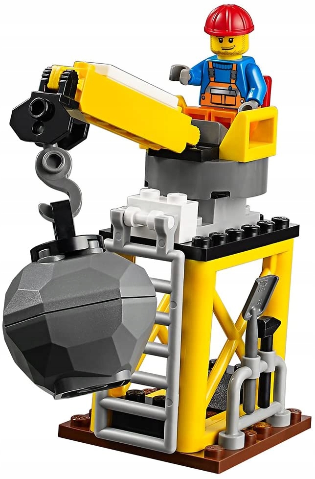 - Кран для сноса имеет основу с лестницей, вращающееся сиденье для минифигурки и вращающаяся рука с шаром сноса.