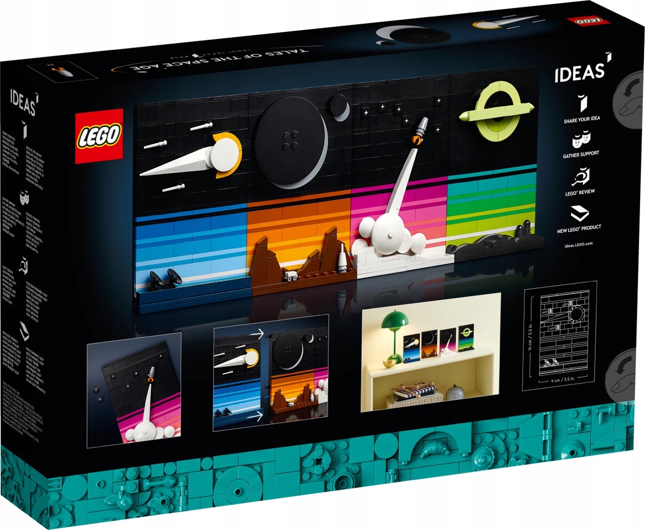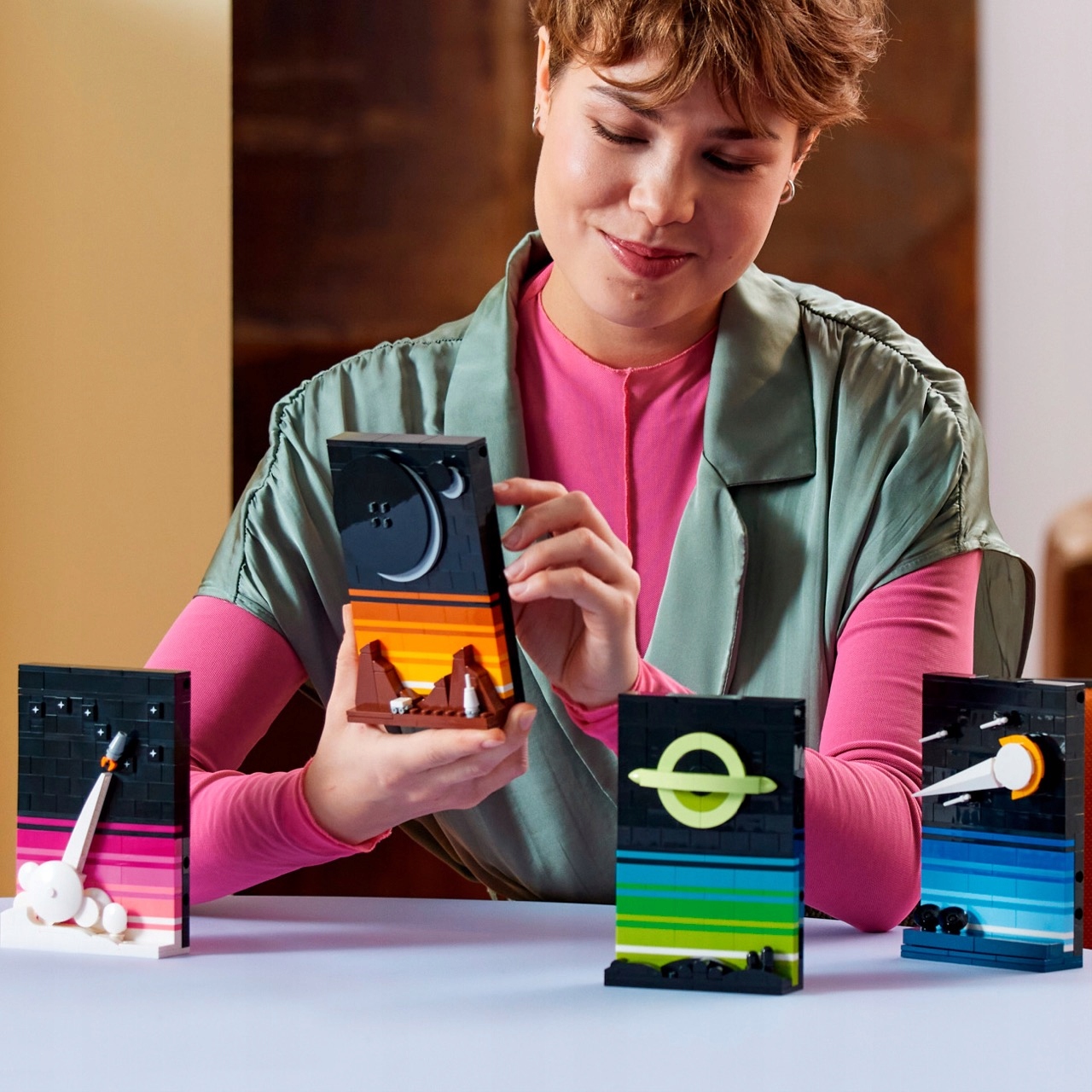 - Четыре 3D-открытки на космическую тематику, которые можно соединить (21340) — истории космических гонок в стиле LEGO® со сборными открытками, вдохновленными мифами, фильмами, книгами и научно-фантастическими плакатами 1980-х годов.