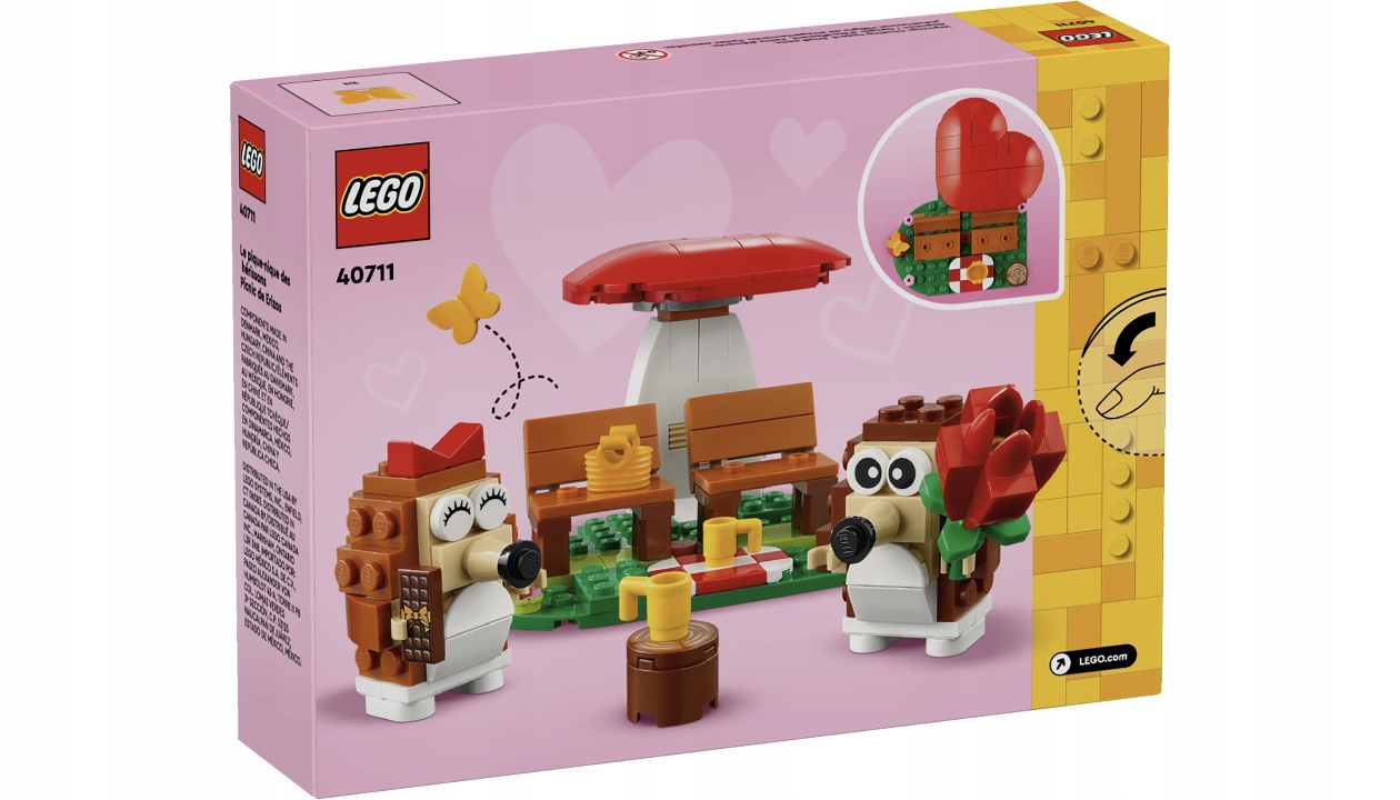 Пикник пары ёжиков LEGO® Other Hedgehog, 40711. Отпразднуйте особый случай с этим очаровательным набором «Пикник пары ёжиков LEGO®» (40711), наполненным забавными функциями. Дети восьми лет и старше могут собирать, демонстрировать или играть с двумя моделями ежиков, которые сидят под грибом в форме сердца на подставке в форме сердца.