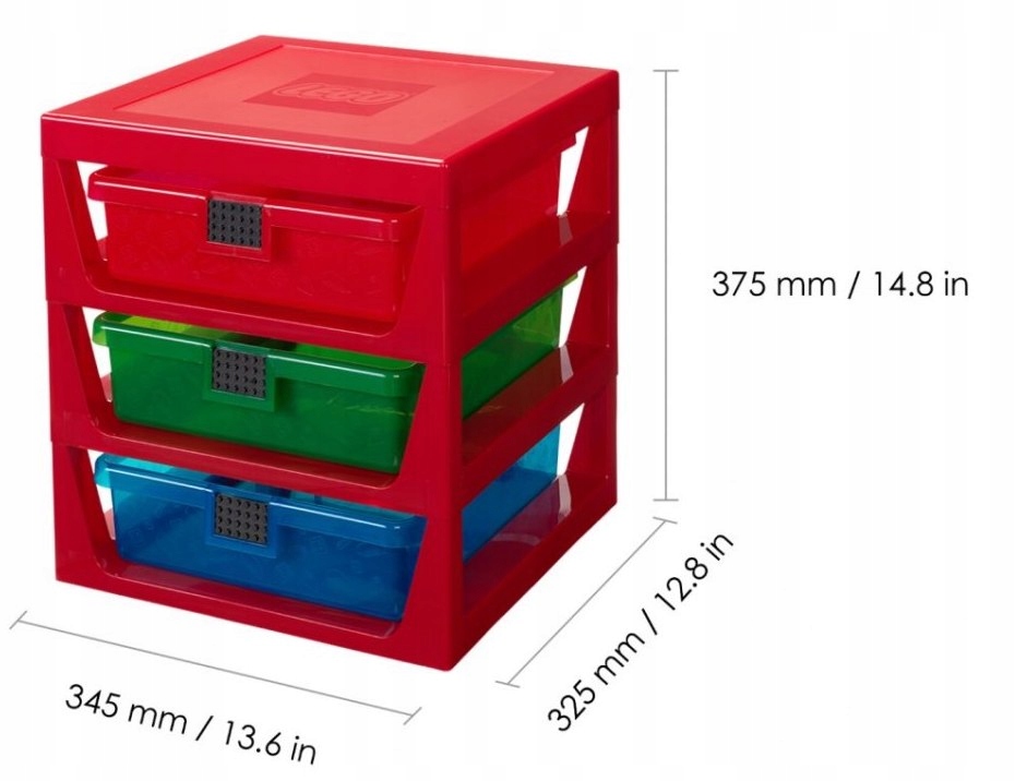 - На полке есть 3 полупрозрачных ящика, наверху которых установлена пластина LEGO®.