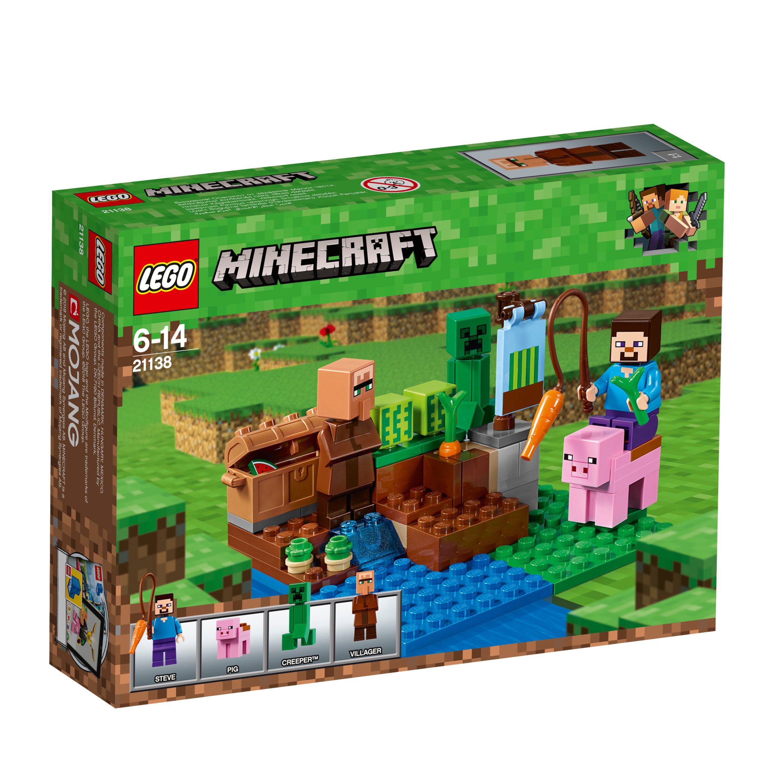 - Включает 2 минифигурки LEGO Minecraft: Стив и поселенец, а также фигурки свиньи и Крипера.