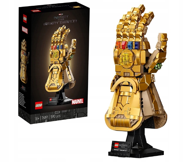 - Красивый набор для сборки LEGO Marvel Infinity Gauntlet (76191). представляет увлекательный стиль, известный по фильмам Marvel Studios «Мстители: Война бесконечности» и «Мстители: Финал».