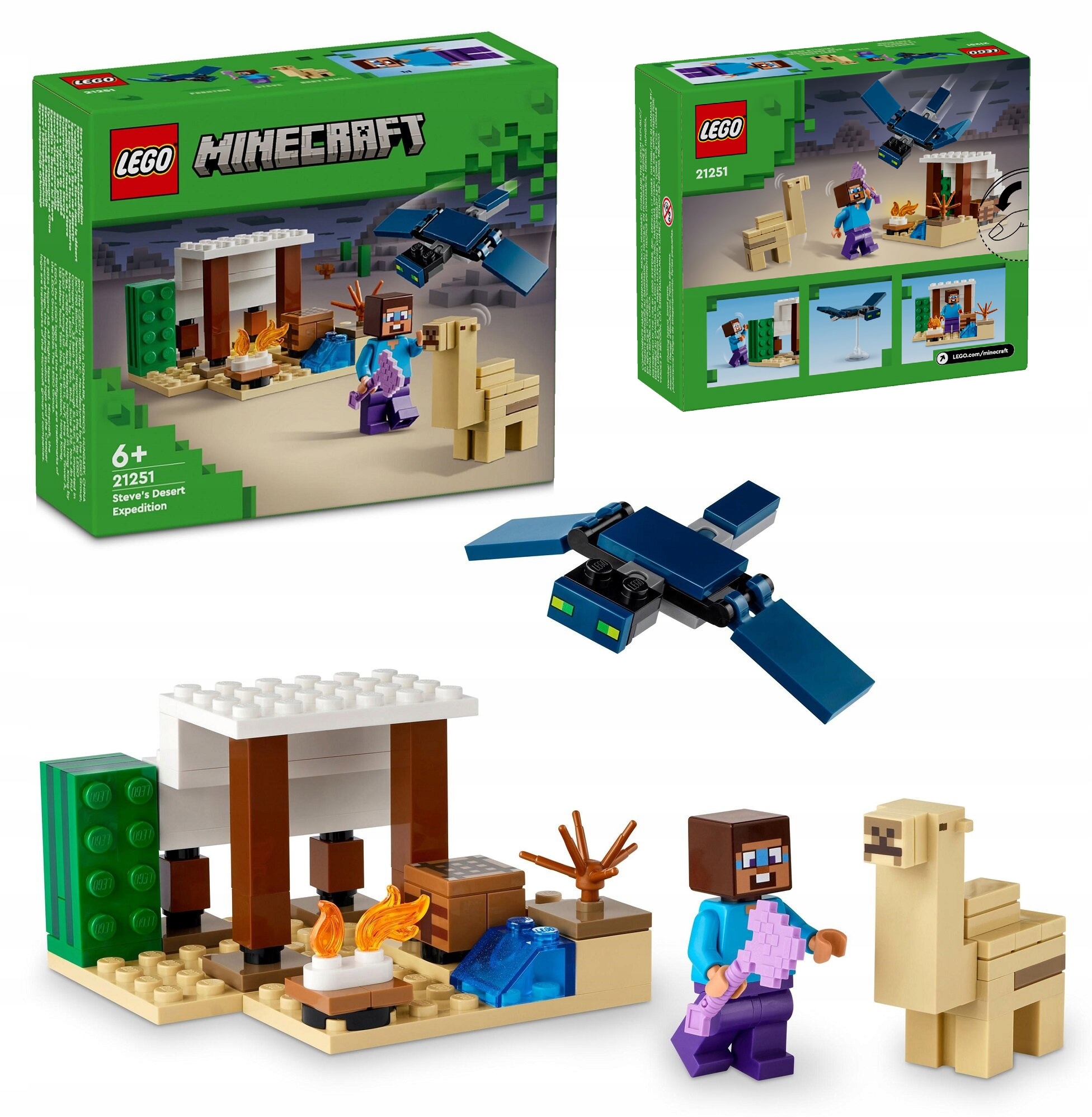 Этот набор LEGO® Minecraft® для игроков от шести лет и старше — первая строительная игрушка для детей, действие которой происходит в пустынном биоме Minecraft. «Экспедиция Стива в пустыню» (21251) предлагает детям построить дом Minecraft во враждебной среде, а затем защитить его от нападения летающего призрака.