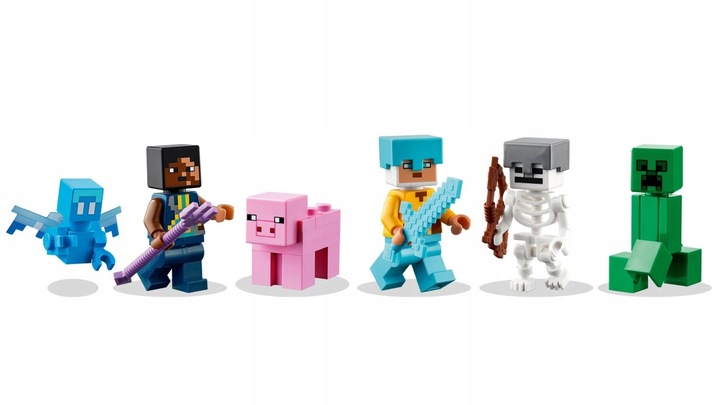 - Точно детализировано — в набор входят часовой, охранник , туша, скелет, Крипер™ и свинья. Элементы, известные из игры, включают музыкальный автомат, из которого дети могут «играть» музыку.