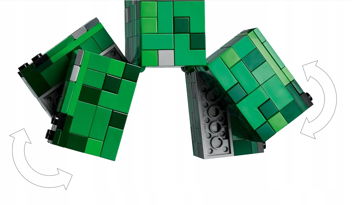 Модель представляет известный лиат из Minecraft и более 21 см в высоту. На статуэтке есть четыре движущихся ноги и голову, которую можно повернуть вбок и перемещаться вверх и вниз. Передняя часть головы может быть удалена, обнаружив скрытый отсек с первой версией Creeper и элемента TNT. Еще больше удовольствия предоставляется приложением Lego Builder - благодаря этому дети могут принести и вращать модель в 3D и отслеживать прогресс в строительстве. Набор содержит 665 элементов.