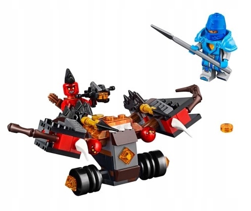 Поднимите катапульту в форме арбалета и разыграйте сценарий осады. У машины серые когти и большие зубы, и она может стрелять глоблиновыми шарами в королевских стражников. В комплекте 2 минифигурки. В набор входят 2 минифигурки: огнемет и королевский страж. Катапульта имеет форму арбалета и вооружена двумя ракетами. Оружие включает копье для королевской гвардии и арбалет для огнемета. В число аксессуаров входят шлем и доспехи Королевской гвардии, колчан огнемета и 3 глоблиновых шара.