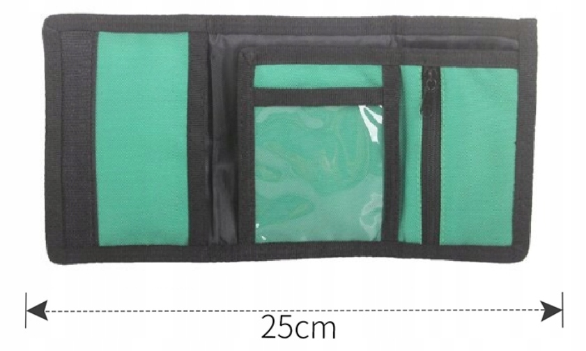 Этот кошелек на липучке имеет 1 отделение для банкнот, карман для карт, прозрачное окошко для фотографии или удостоверения личности и карман для монет на молнии.