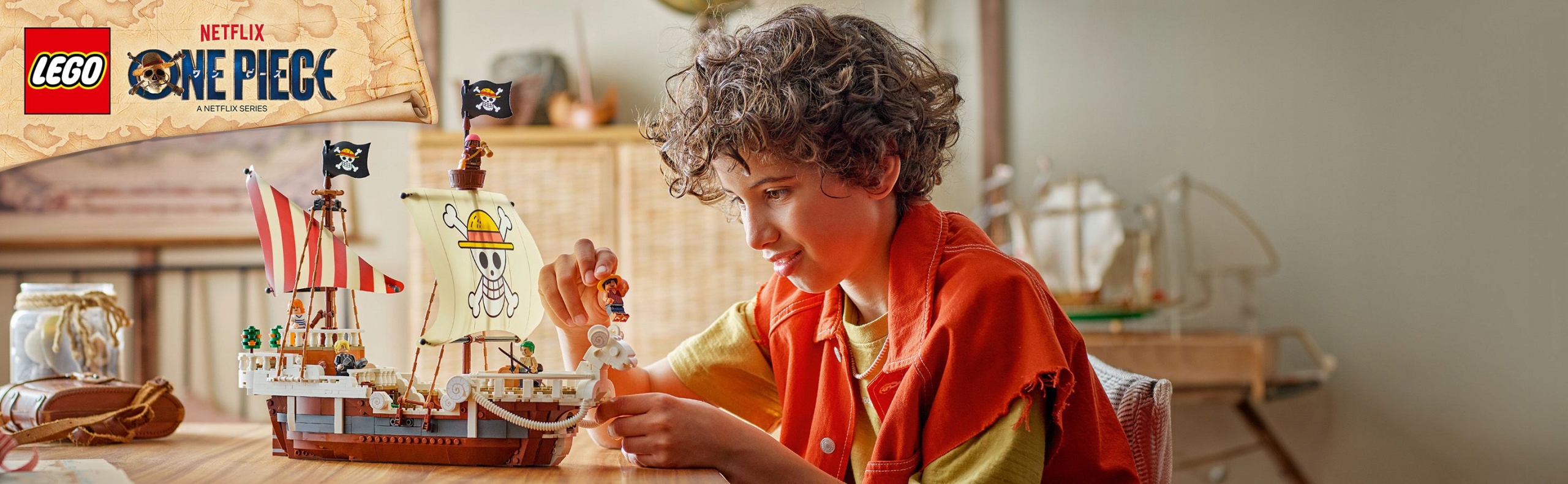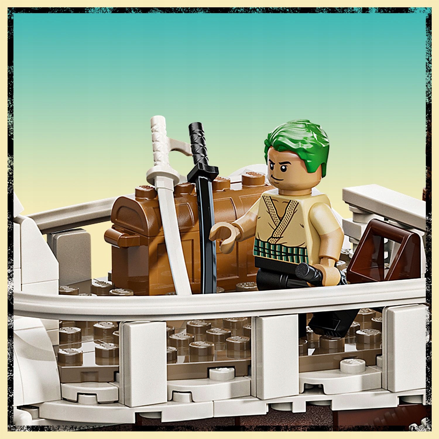 На этом легендарном корабле есть что открыть: каюта экипажа, камбуз, склад и мастерская с дополнительными аксессуарами на борту. В набор входят пять минифигурок LEGO ONE PIECE. Луффи сидит на носовой фигуре в форме овцы на носу корабля, под которой расположена пушка. Зоро отдыхает и тренируется на палубе, Нами управляет штурвалом в задней части корабля, где растут ее любимые мандариновые деревья. Усопп взбирается на мачту и наблюдает из вороньего гнезда, а Санджи спускается на кухню с кастрюлями. В комплект также входят четыре плаката о розыске. Для дополнительного цифрового развлечения приложение LEGO Builder позволяет детям масштабировать и вращать 3D-модели и отслеживать их прогресс. В наборе 1376 деталей.