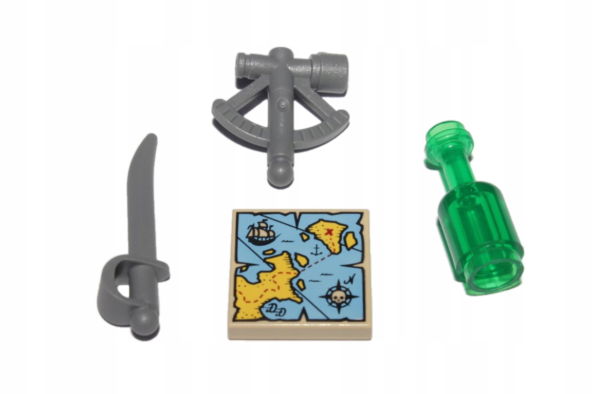 - ЦЕНА «купить сейчас» распространяется на 1 комплект пиратских аксессуаров LEGO: карта со спрятанными сокровищами, зеленая бутылка, сабля, секстант.