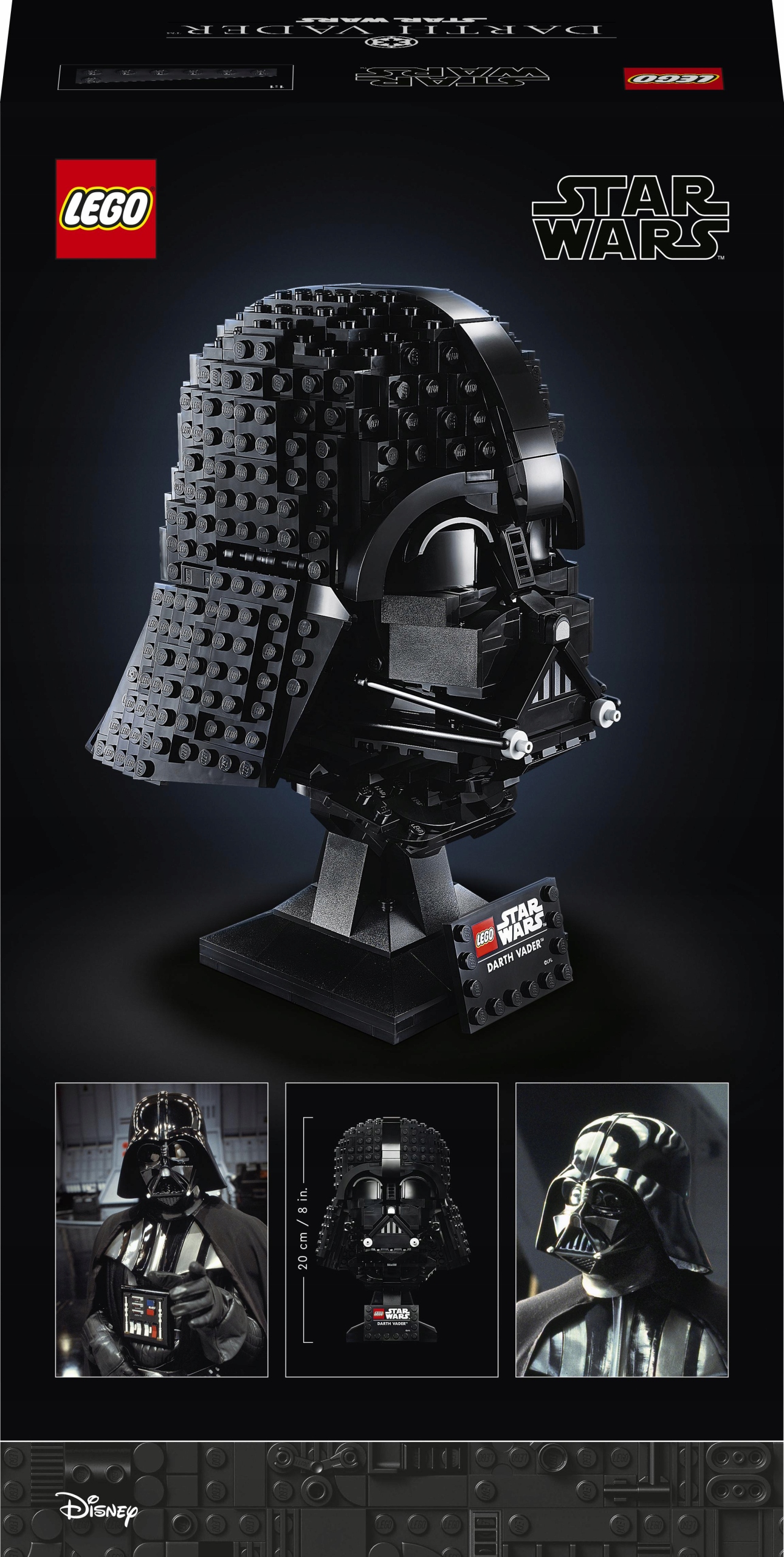 Знаменитый облик шлема Дарта Вейдера воссоздан из кубиков LEGO, чтобы напомнить вам о классических сценах «Звездных войн», а подставка дополняет этот главный предмет вашей коллекции.