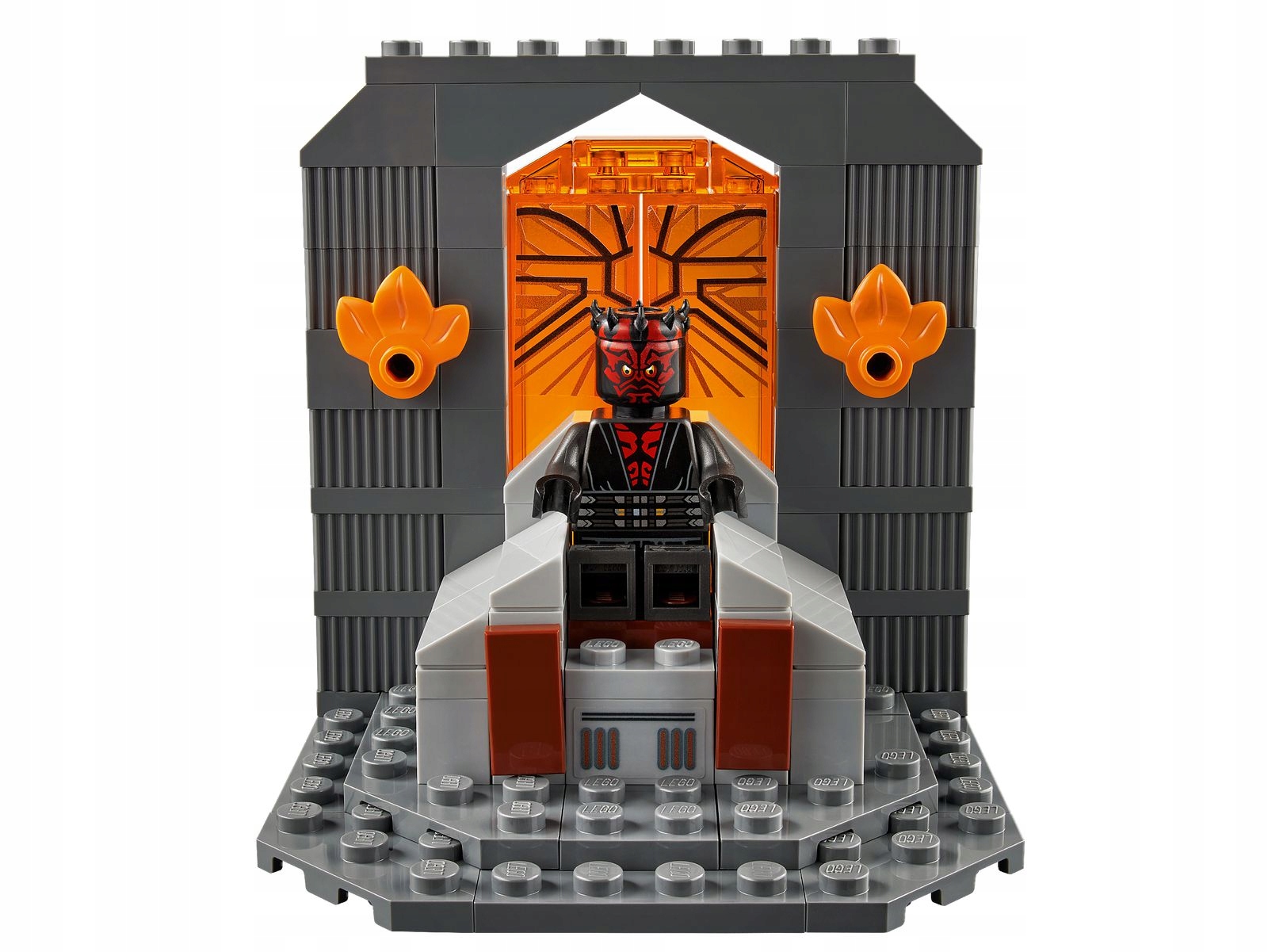 - В комплект входит: сборный трон со скрытым укрытием для бластерного пистолета, декоративные элементы, в том числе разбиваемое окно и мандалорское хранилище, в котором можно разместить минифигурку LEGO®.