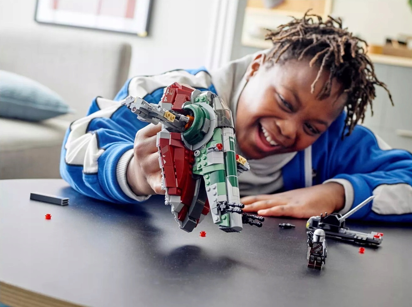 - Дети могут воссоздать батальные сцены из второго сезона сериала «Звездные войны: Мандалорец» и создать свои собственные миссии охотника за головами с помощью модели космического корабля Бобы Фетта из кубиков LEGO® (75312).