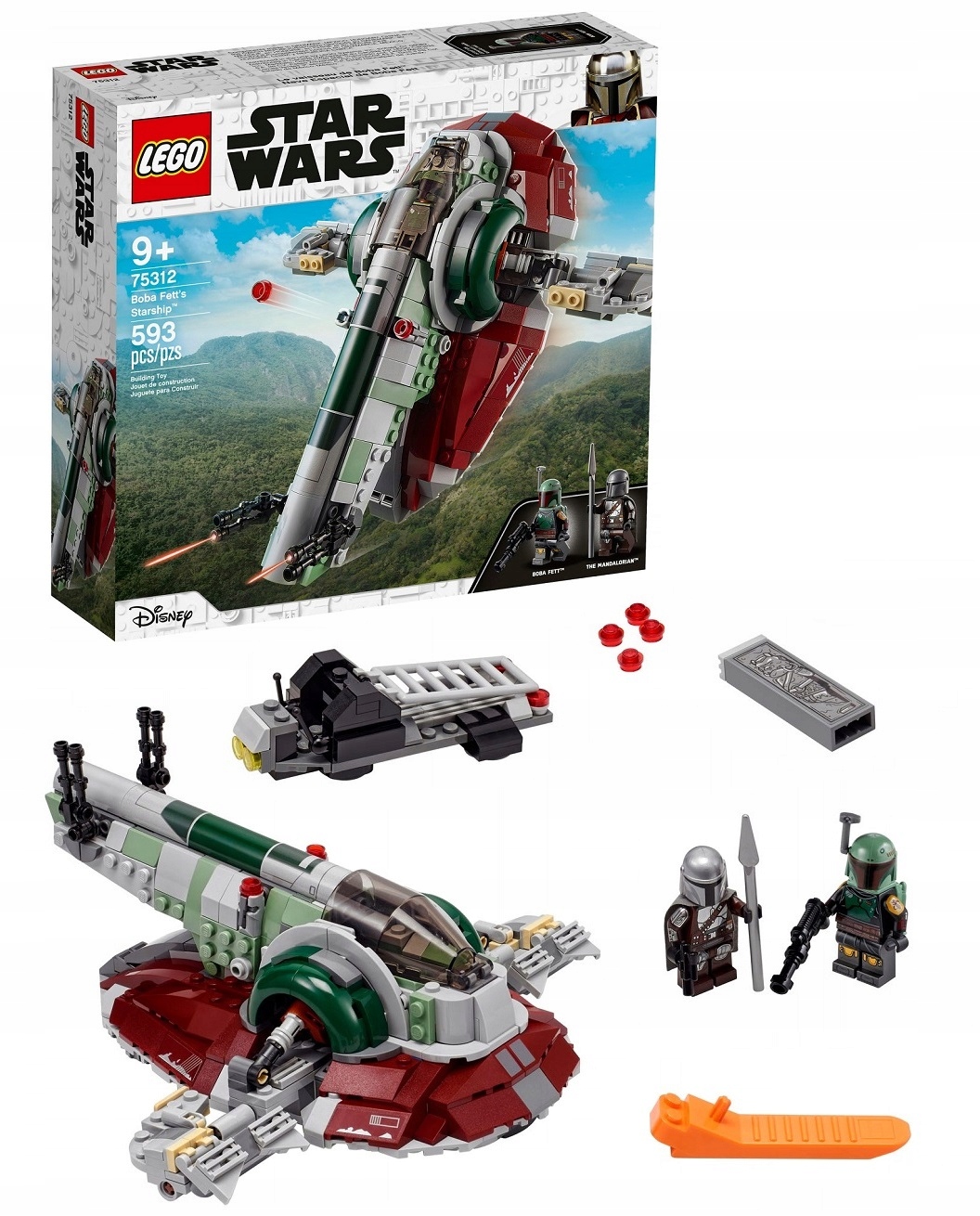 Звездные войны: поклонники мандалорцев могут отправиться на миссии и сражения, достойные настоящих охотников за головами, с этой великолепной моделью звездолета Боба Фетта LEGO® (75312). Модель оснащена ручкой для облегчения полета, открывающейся кабиной для минифигурок LEGO, вращающимися крыльями, двумя шипометами и двумя вращающимися пушками с двойными бластерами (нестреляющими). В этот высококачественный набор также входят вооруженные минифигурки LEGO Бобы Фетта и Мандалорца, а также карбонитовый кирпич, который помещается во встроенный отсек для хранения вещей.
