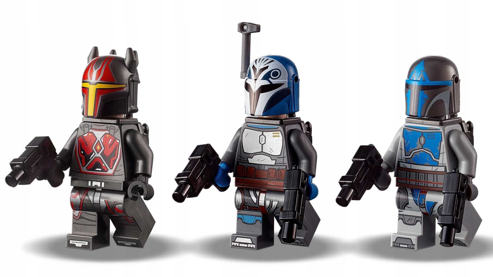 - В набор входят три новые минифигурки LEGO®, выпущенные в августе 2021 года: Бо -Катан Крайз, Гар Саксон и мандалорский лоялист. Каждый из них вооружен бластерными пистолетами (всего их пять) и оснащен реактивным ранцем.