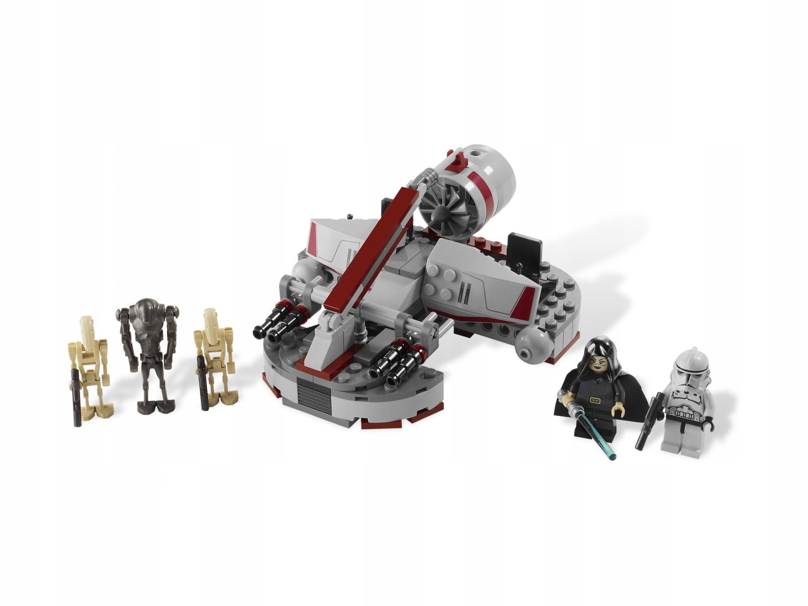 В набор входят5 фигурок: Командир-джедай Баррисс Оффи, солдат-клон, боевой супердроид и боевые дроиды