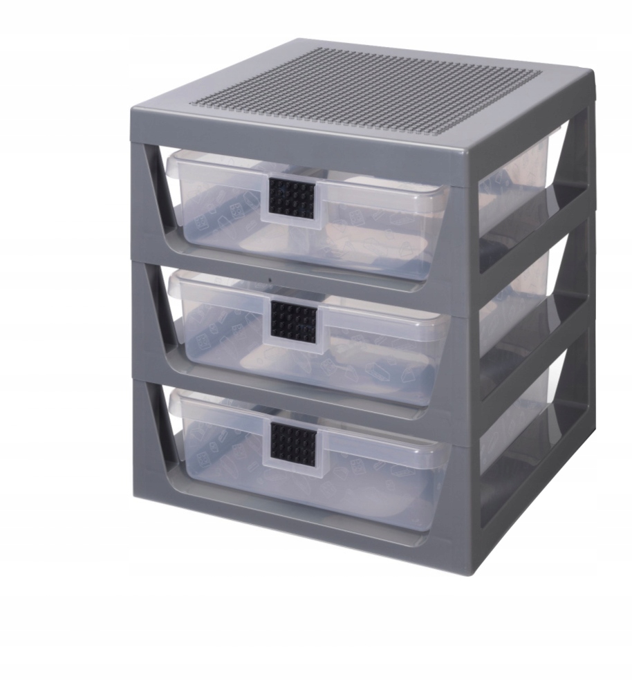 - На полке есть 3 полупрозрачных ящика, наверху которых установлена пластина LEGO®.