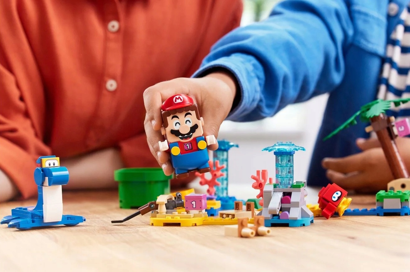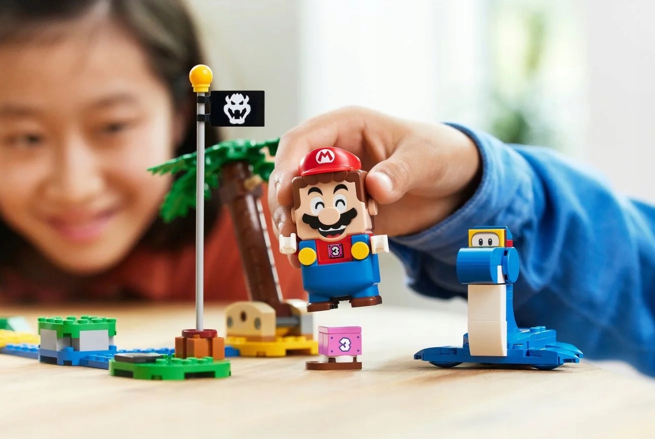 - Красочный пляж из кубиков — с помощью дополнительного набора «Пристань Дорри» (71398) дети могут добавить пляж в свой стартовый набор LEGO® Super Mario™.