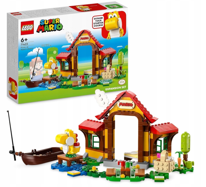 Дети смогут создать увлекательный уровень с помощью этого крутого дополнительного набора «Домашний пикник Марио» LEGO® Super Mario™ (71422). Детально построенный кирпичный дом и сад позволяют игрокам разыгрывать ролевые игры и зарабатывать цифровые монеты, используя интерактивные фигурки LEGO® Mario™, LEGO® Luigi™ или LEGO® Peach™ (не входят в комплект). Поздоровайтесь с Желтым Йоши, поспите в постели, «ешьте» печенье из корзины для пикника, «поливайте» овощи в саду, играйте в хоккей или отправляйтесь на рыбалку в лодке. Примечание. Для интерактивной игры требуется интерактивный игровой набор (71439, 71440 или 71441), который продается отдельно.