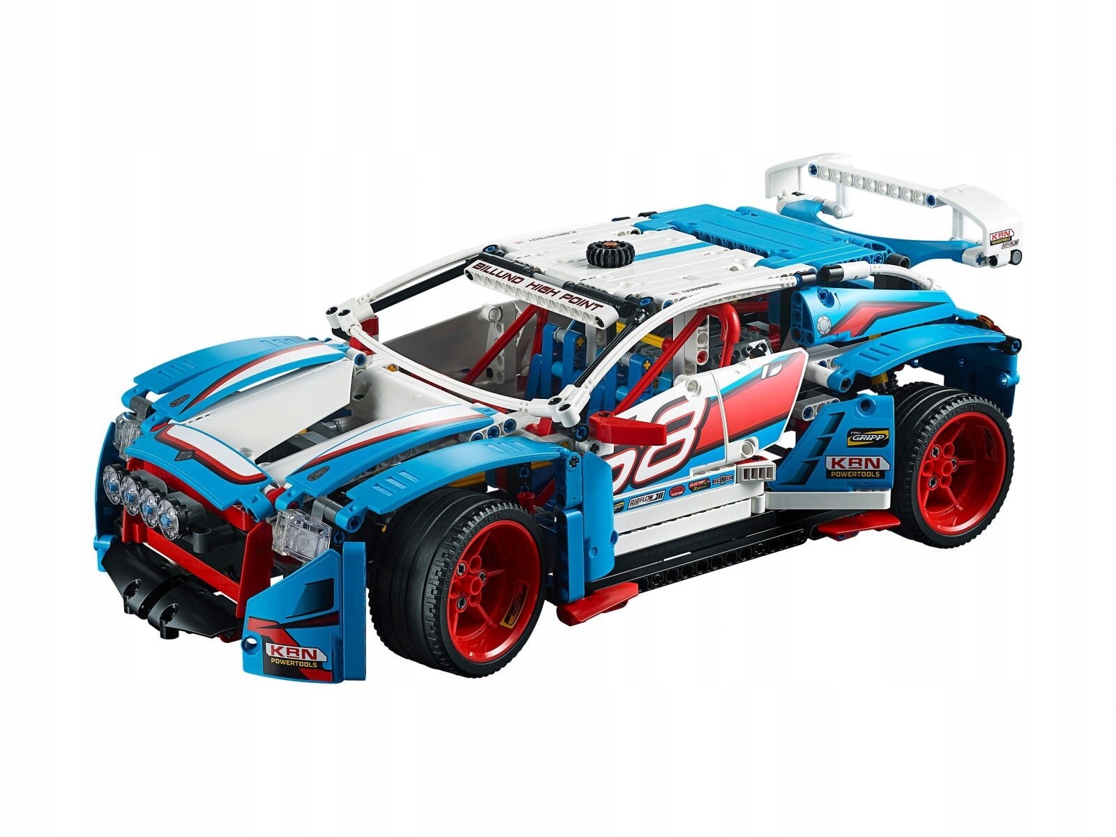 - Модель имеет спортивное тело, построенное из синих, белых, красных и черных элементов с наклеек ралли.