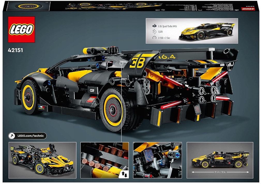 Вдохновите своего девятилетнего ребенка или старше построить собственную модель гоночного автомобиля с помощью набора LEGO® Technic Bugatti Bolid (42151). Дети смогут воссоздать реалистичные детали, включая двигатель W16, рулевое управление и двери типа «крыло чайки». Великолепный внешний вид автомобиля привлекает внимание черно-желтой расцветкой и реалистичными наклейками. После того как вы соберете и осмотрите автомобиль, вы сможете с гордостью демонстрировать коллекционную модель в качестве украшения.