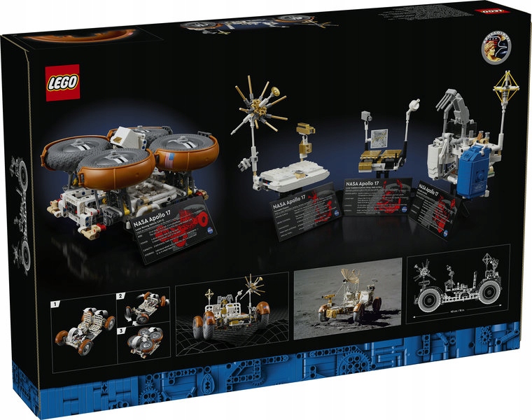 Соберите марсоход НАСА, добавьте оборудование и проверьте рулевое управление и подвеску, представляя себе прогулку по луноходу. Луна и сбор проб с поверхности Луны. Осмотрите аккумуляторную систему, содержащую нагревательные и охлаждающие элементы, а также телекамеру с антеннами. Исследуйте модуль связи, опробуйте такие инструменты, как лопата и дрель, и найдите элементы LEGO Moon Rock. В комплект также входит гравиметр для эксперимента «Аполлон-17» и Большой Мули, самый крупный образец горной породы, доставленный на Землю в рамках программы «Аполлон».
