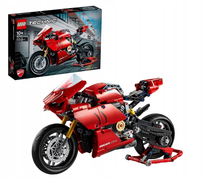 Стиль, изысканность и производительность. Прекрасная модель Ducati Panigale V4 R из набора LEGO® Technic 42107 отражает дух и дизайн оригинала. В серии LEGO Technic еще не было модели мотоцикла, которая имела бы коробку передач, позволяющую осваивать разные скорости и технику езды — это первая. У него также есть другие удивительные особенности, а именно рулевое управление, реалистичная передняя и задняя подвеска, а также передние и задние дисковые тормоза.