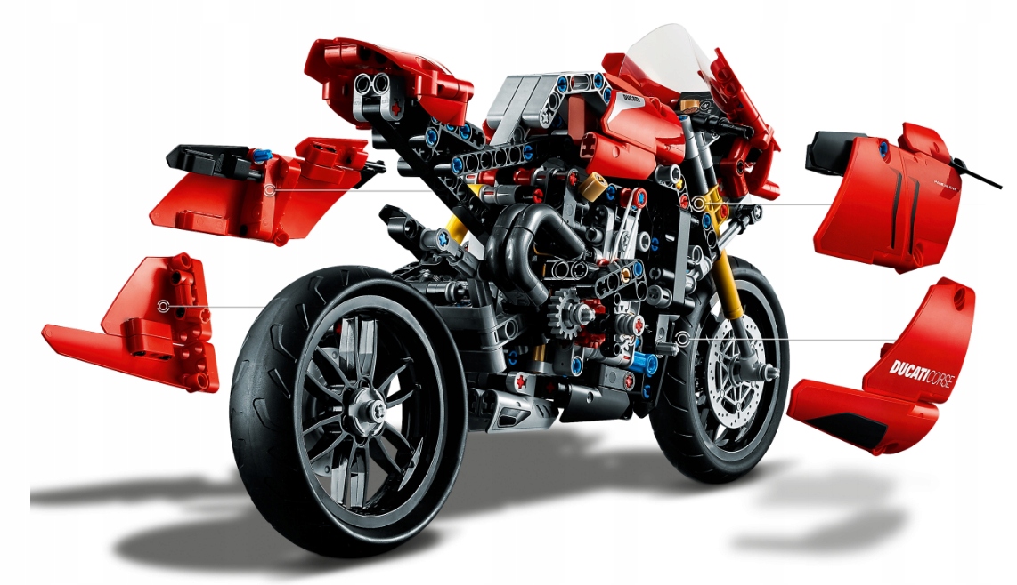 - Соберите свой собственный Ducati Panigale V4 R, чтобы лучше понять этот культовый мотоцикл и то, как он работает. Эта модель является первым мотоциклом из серии LEGO® Technic, оснащенным двухскоростной коробкой передач.