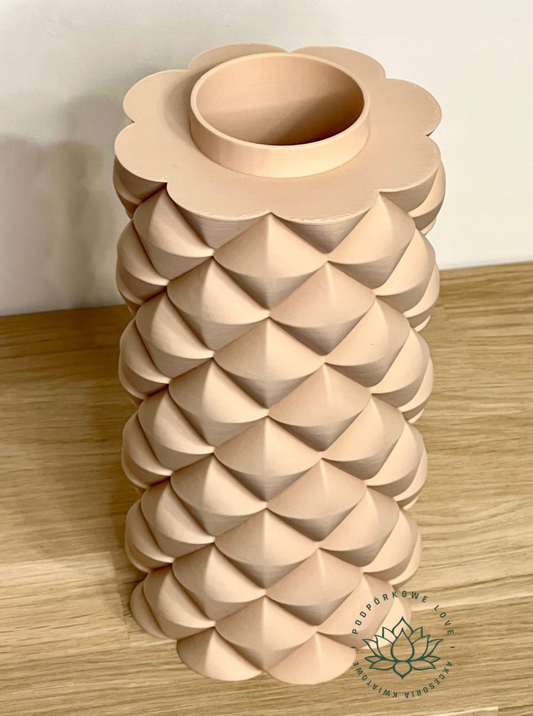 Эта уникальная ваза была напечатана с использованием технологии 3D-печати. Он имеет легкую и очень интересную структуру, а благодаря своей уникальной форме прекрасно смотрится как отдельно, так и с цветами. Он прекрасно сочетается как с искусственными цветами, так и с модной сухой травой.