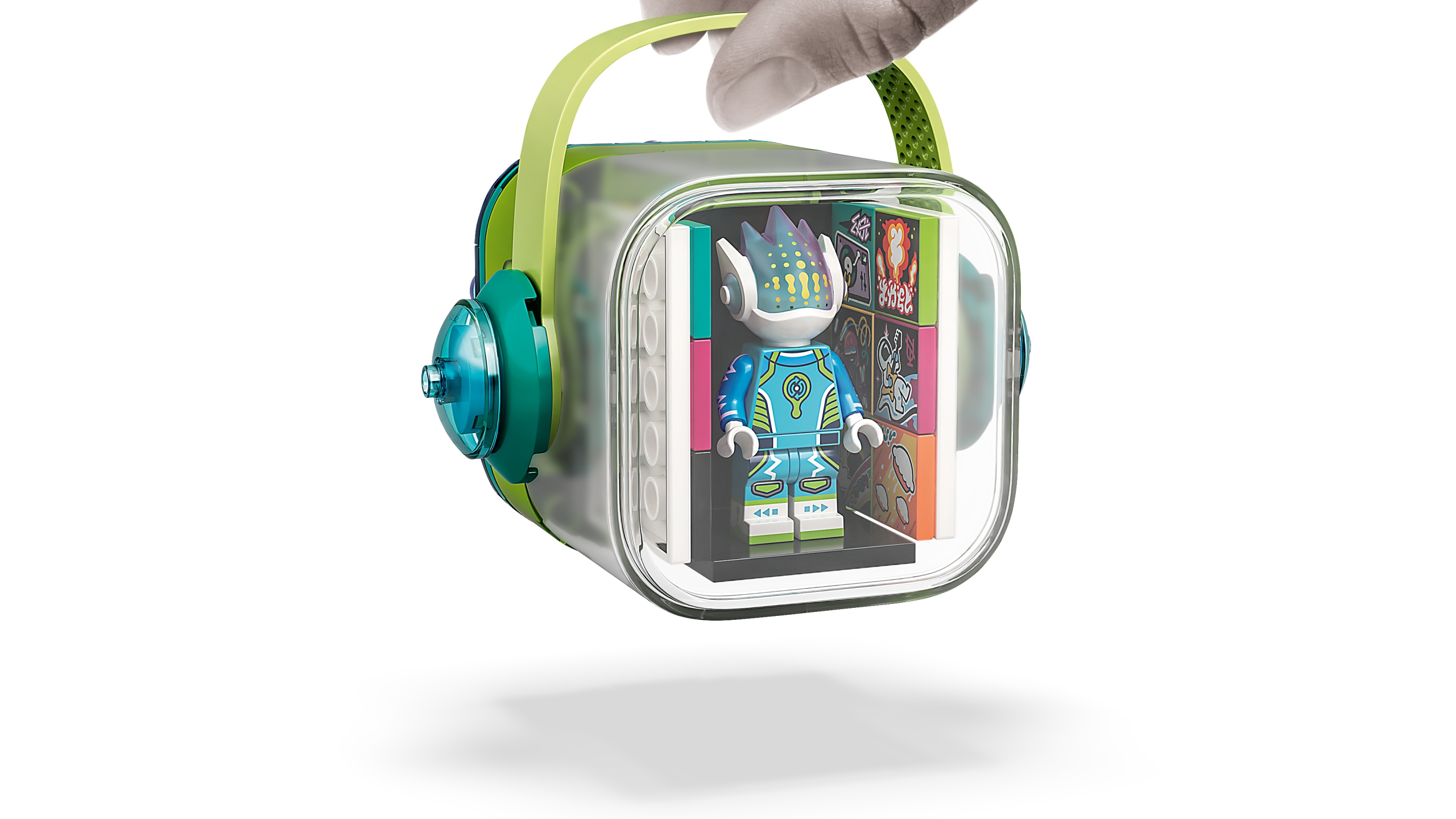 - Модель раскладывается, поэтому музыкальный мир может сопровождать детей на каждом шагу. Внутри есть место для кирпичной сцены, 16 BeatBits и виниловой пластинки Alien DJ.