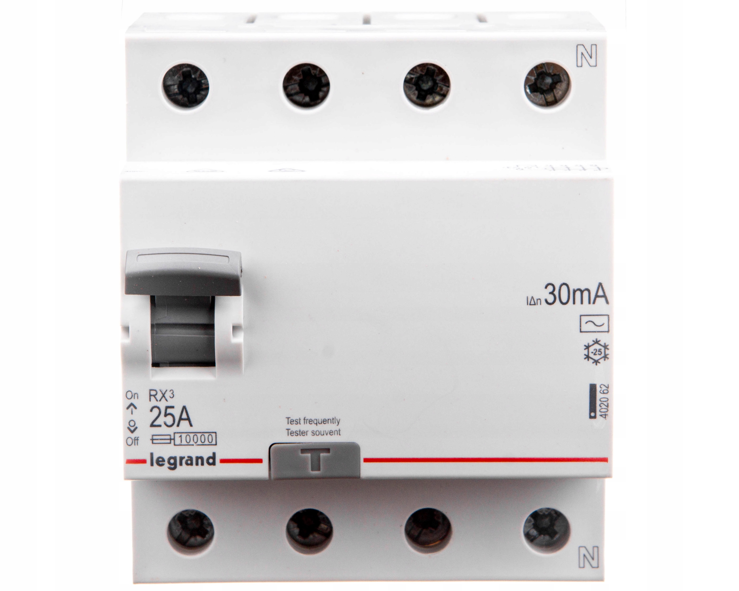 LEGRAND ДИФЕРЕНЦІАЛЬНИЙ АВТОМОТИЧНИЙ ВИМИКАЧ 25A/30MA 4 ПОЛЮСА ТИПУ AC RX3 402062