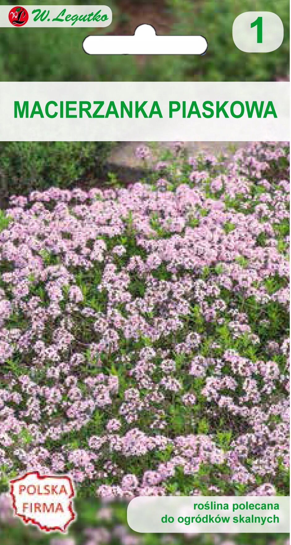 - Красивый, быстрорастущий многолетник с низким ростом, т.е. тимьян розовый песочный, характеризующийся вечнозелеными листьями. . Достигает высоты 5 см. Семена цветов, предлагаемые брендом «Легутко», позволяют насладиться маленькими розовыми цветками, собранными в удлиненные колосья. Период цветения – с июня по август. Тимьян песочный станет настоящим украшением любого сада