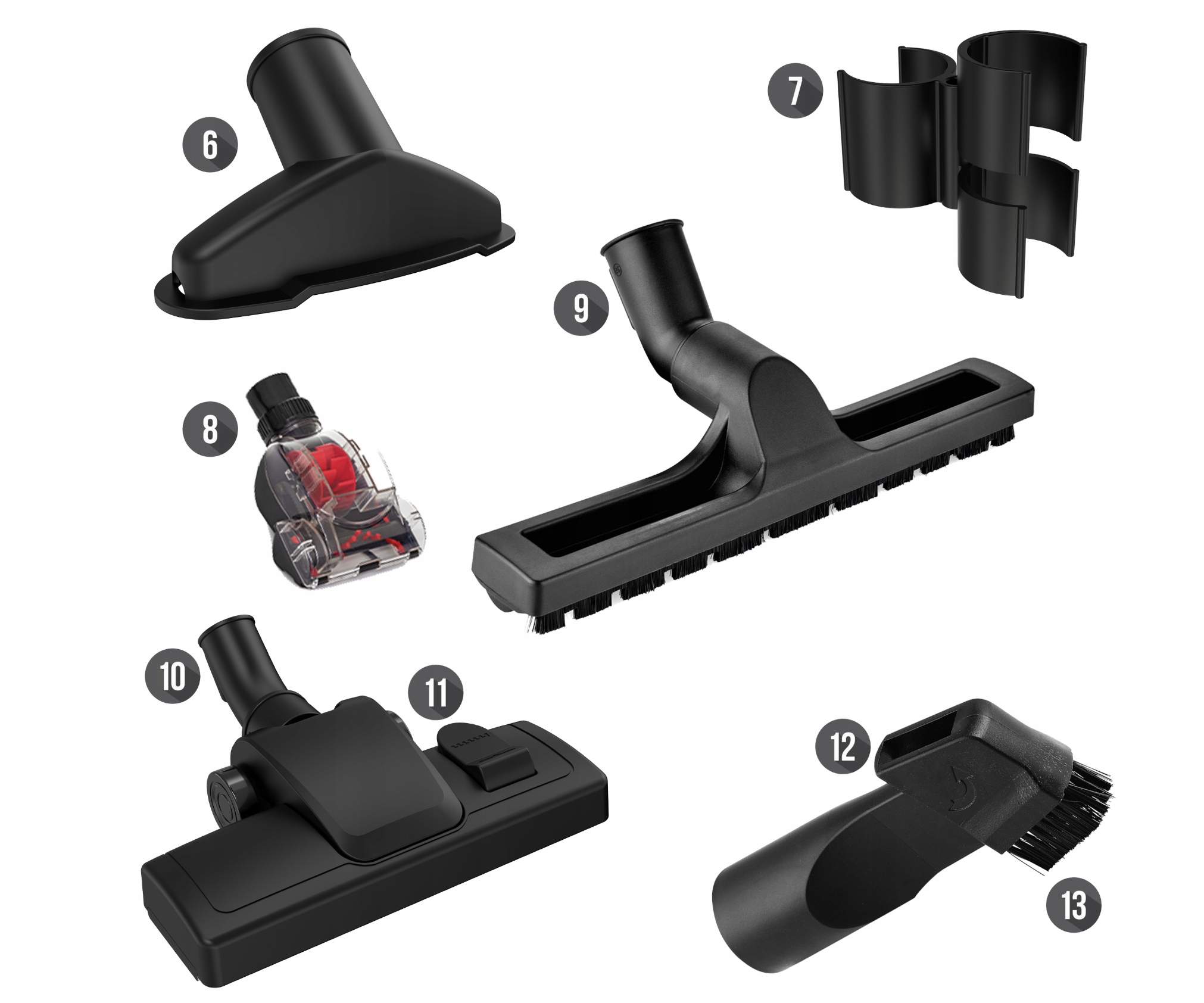 ➡️ Lehmann Typhoon 4000 оснащен турбощеткой, щетками для пола и паркета, гибкой щелевой насадкой, щелевой насадкой со щетиной и переключателем для ковров. Набор из 15 предметов позволяет провести комплексную уборку дома, автомобиля и труднодоступных мест без дополнительных покупок.