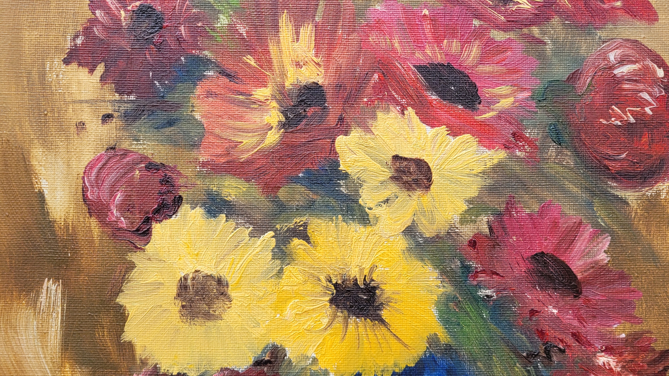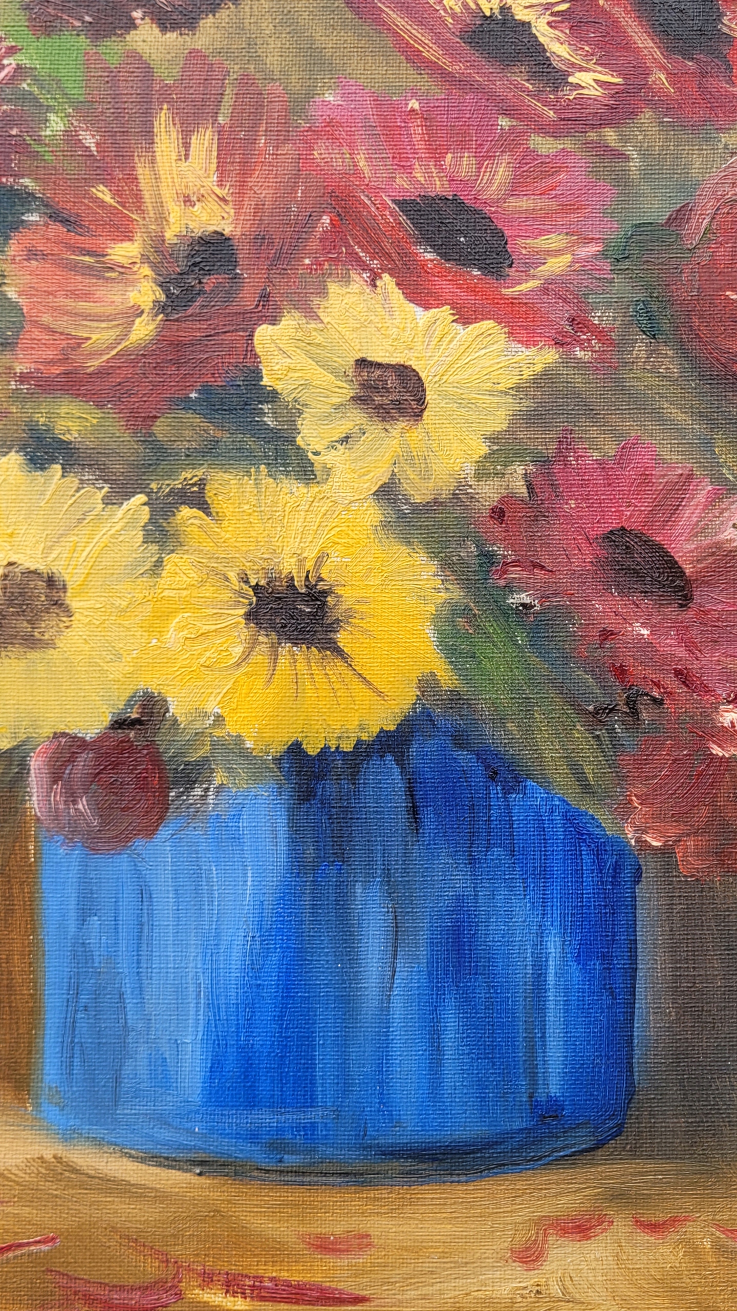 Объект продажи - это красивая старая масляная картинка "в синей вазе".