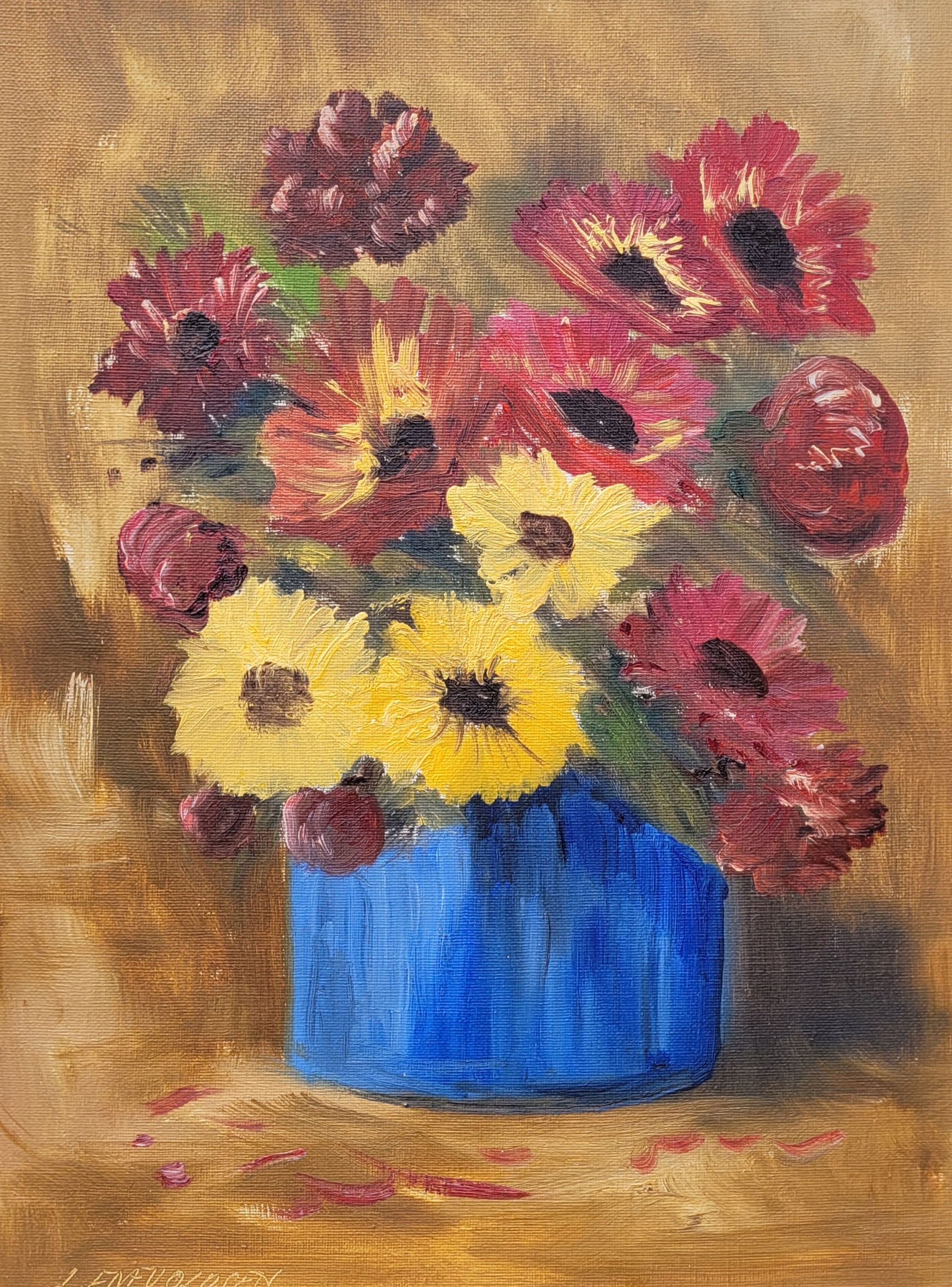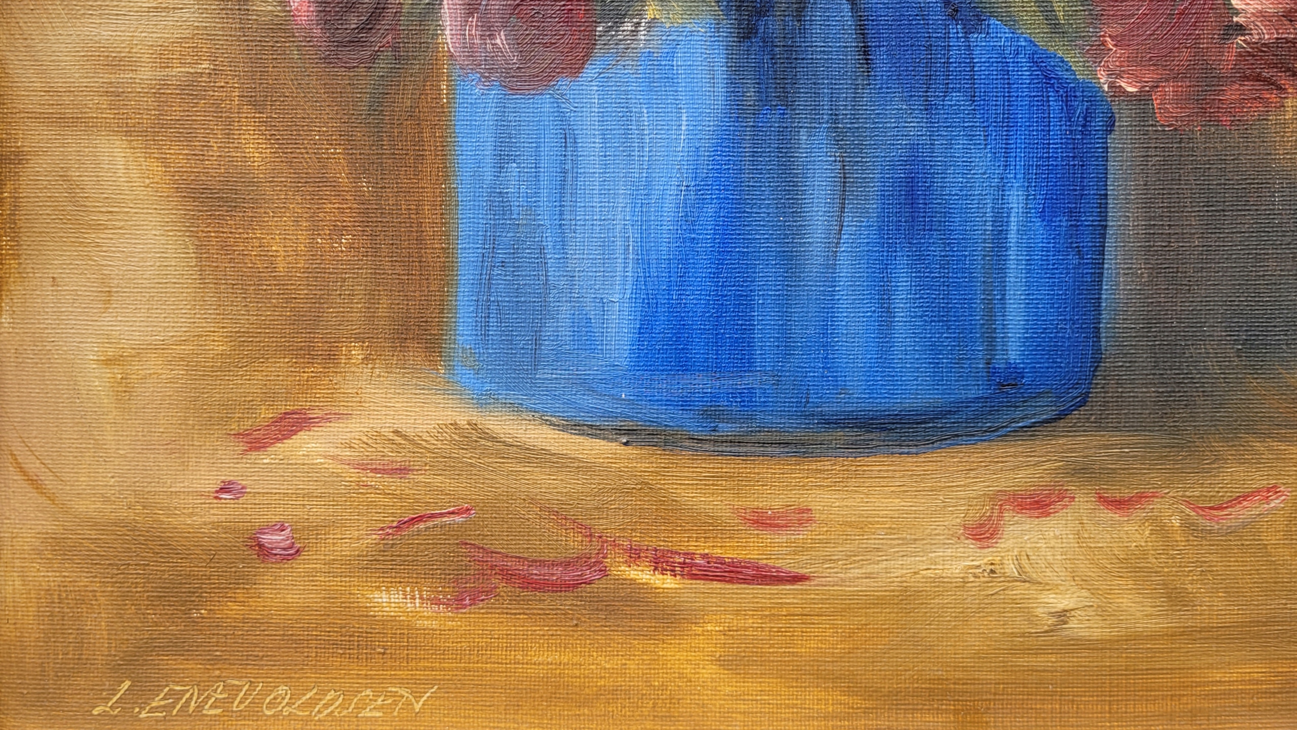 Лейф Эневолдсен (1935 -) - «Цветы в синей вазе», масляная картина.